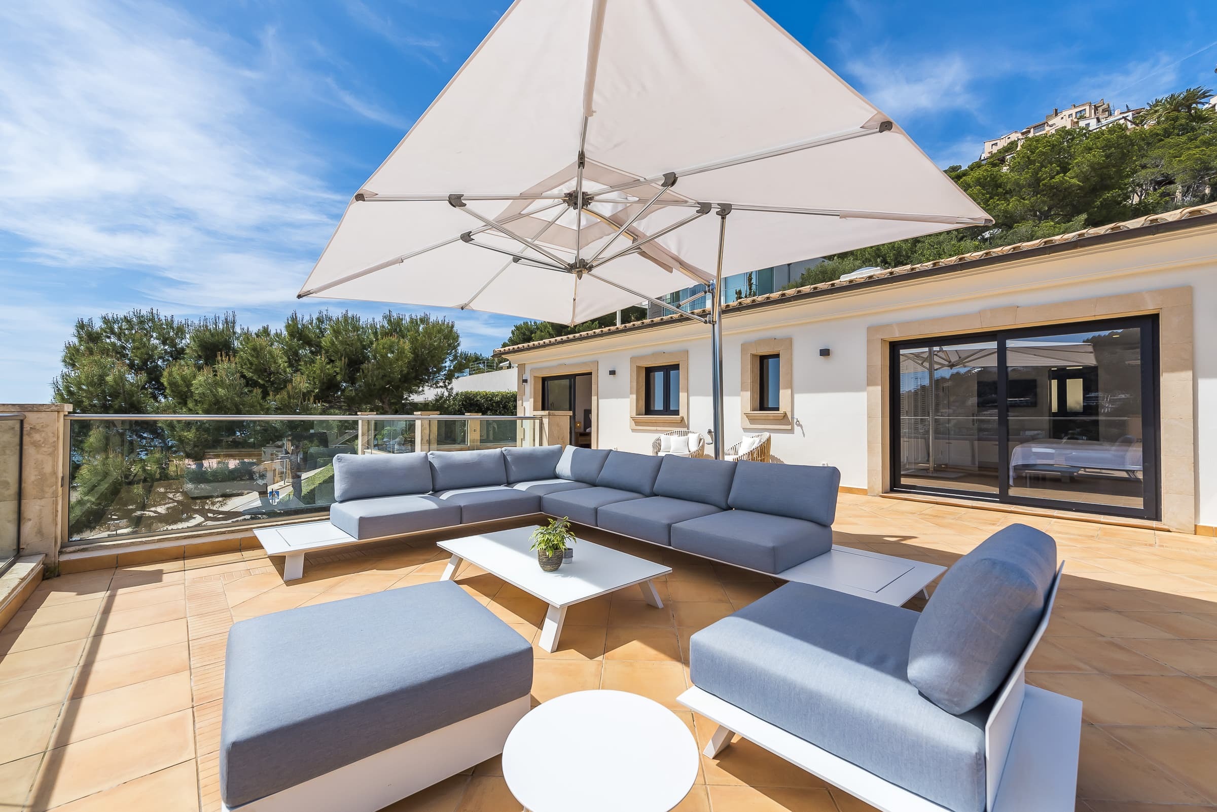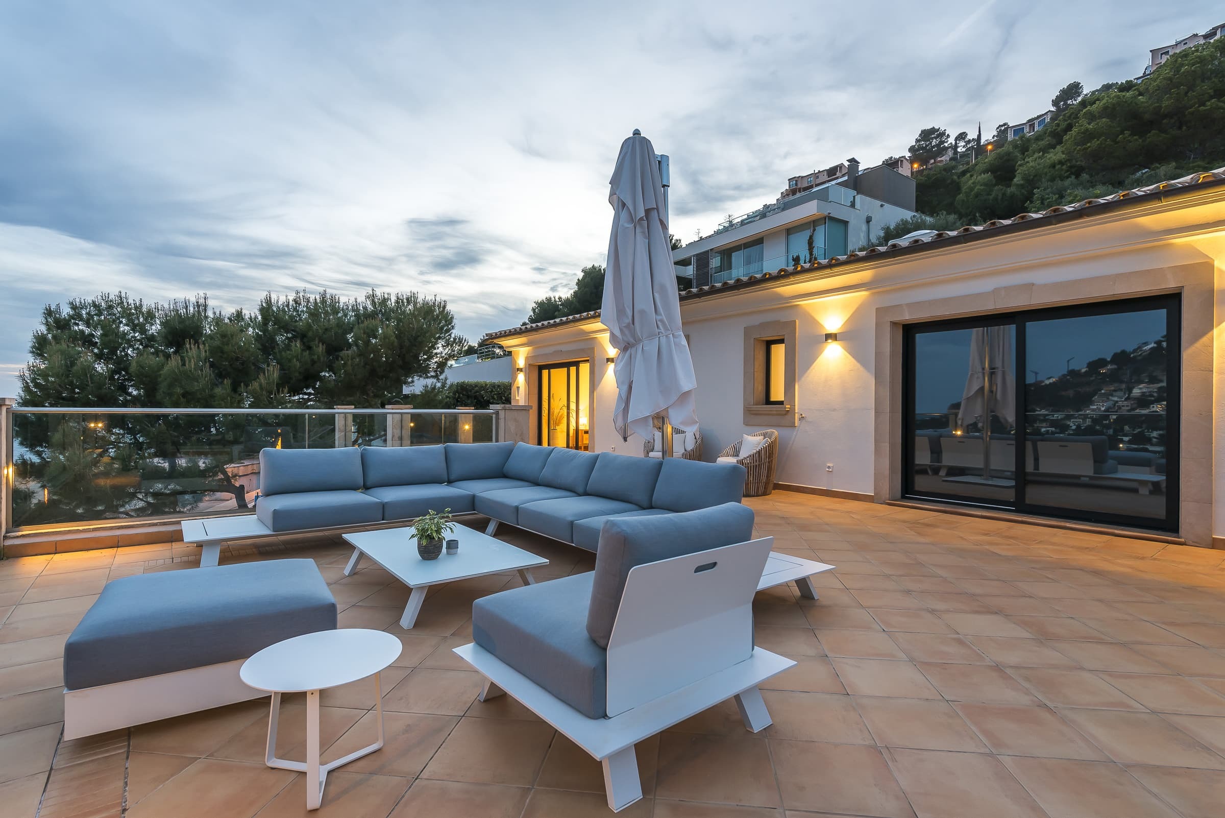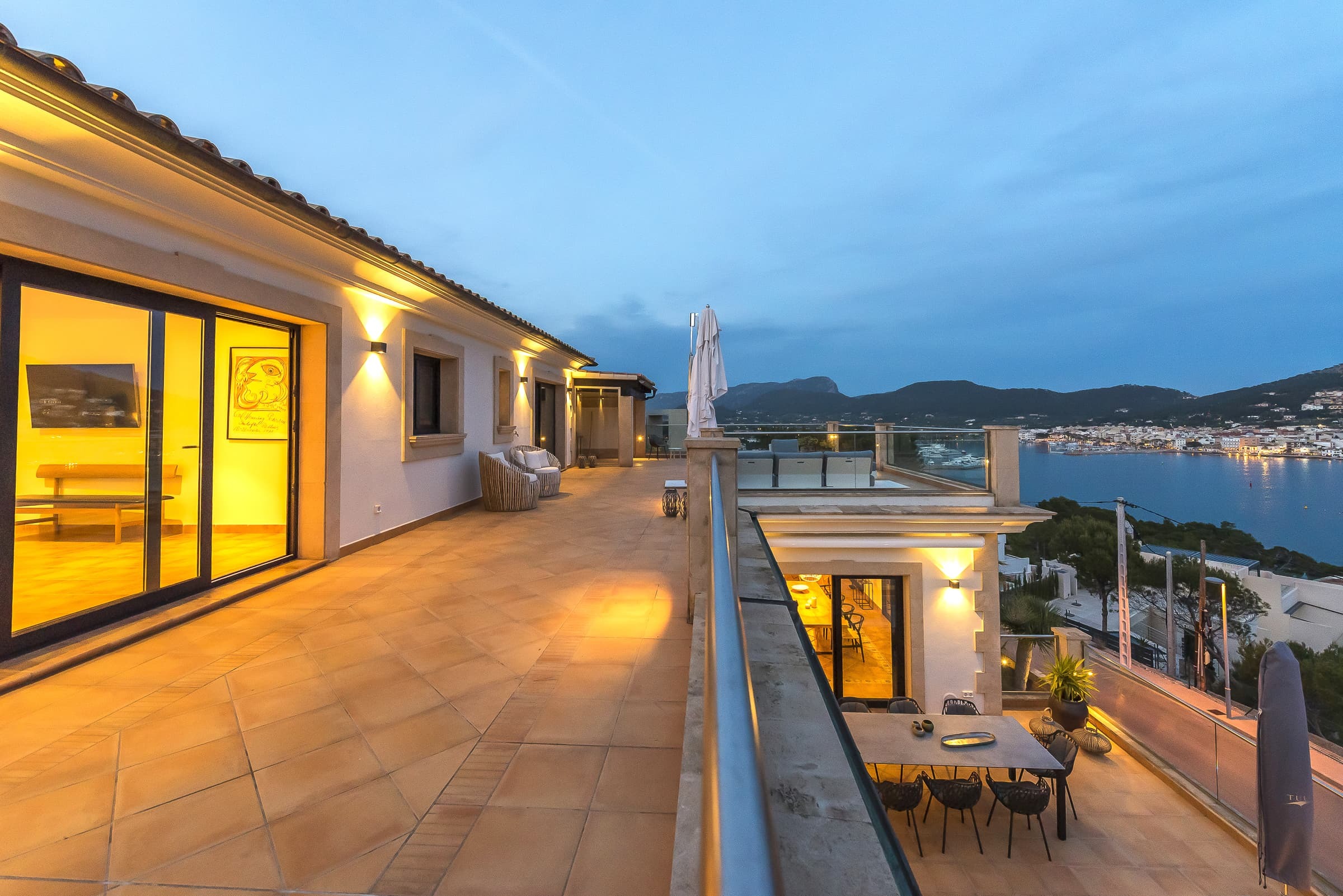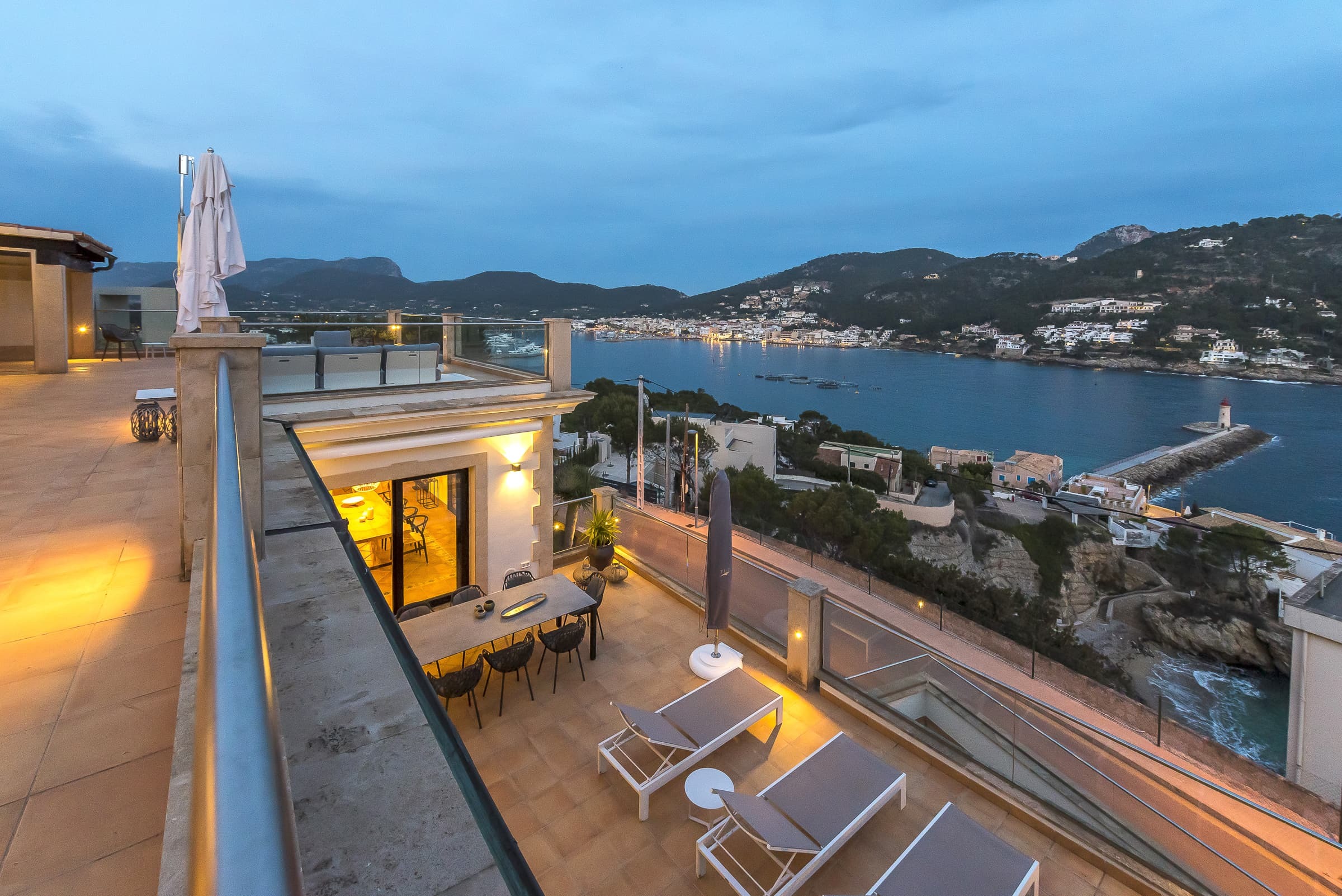 Set above the harbour of Puerto de Andratx, Villa Port Azure is defined by its elevated position and uninterrupted views across the marina and open sea. From first light to the final glow of sunset, the shifting colours of the water form a constant backdrop to daily life.