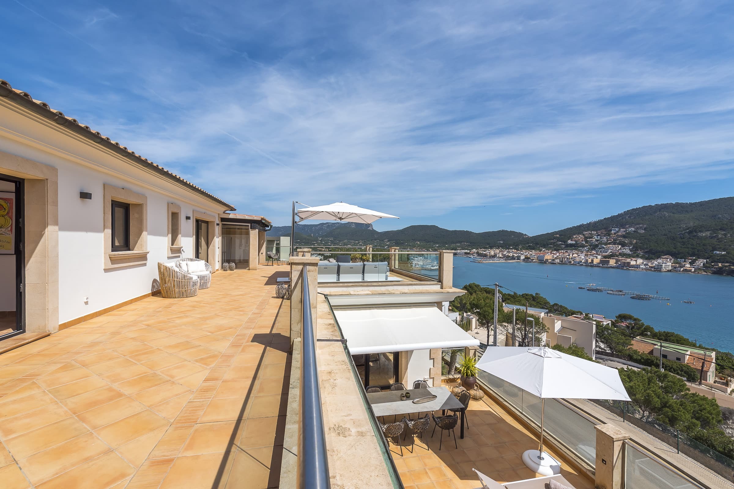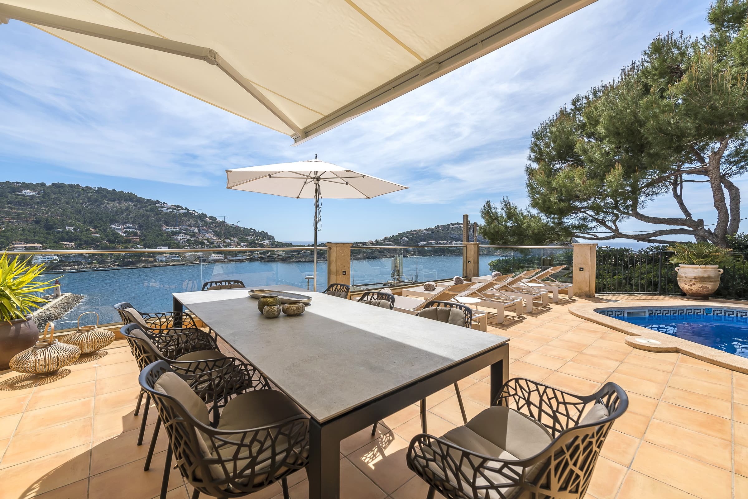 Set above the harbour in Puerto de Andratx, the villa enjoys a privileged elevated position with panoramic views, while remaining within walking distance of a small beach and just minutes from the marina, restaurants, and boutiques.