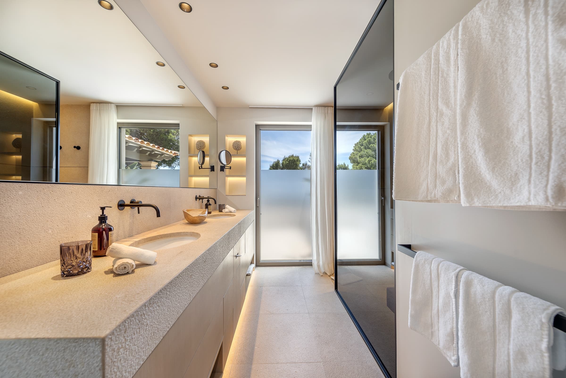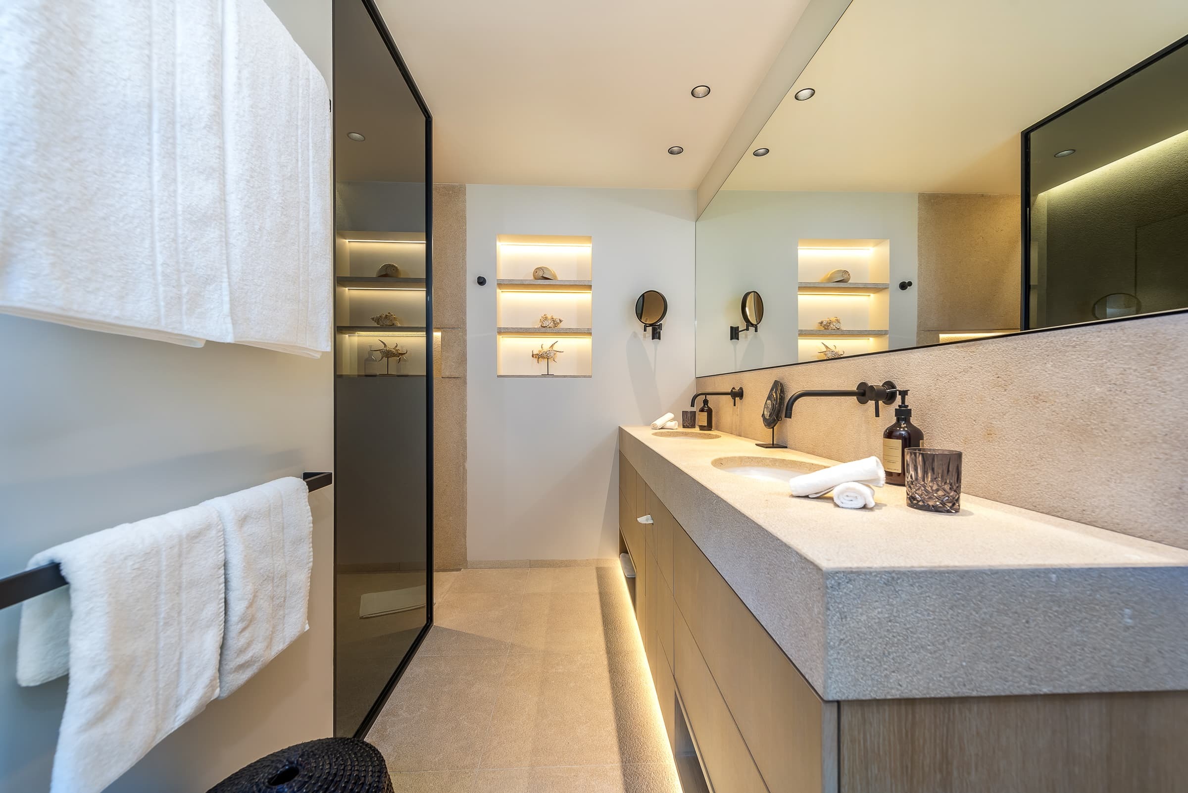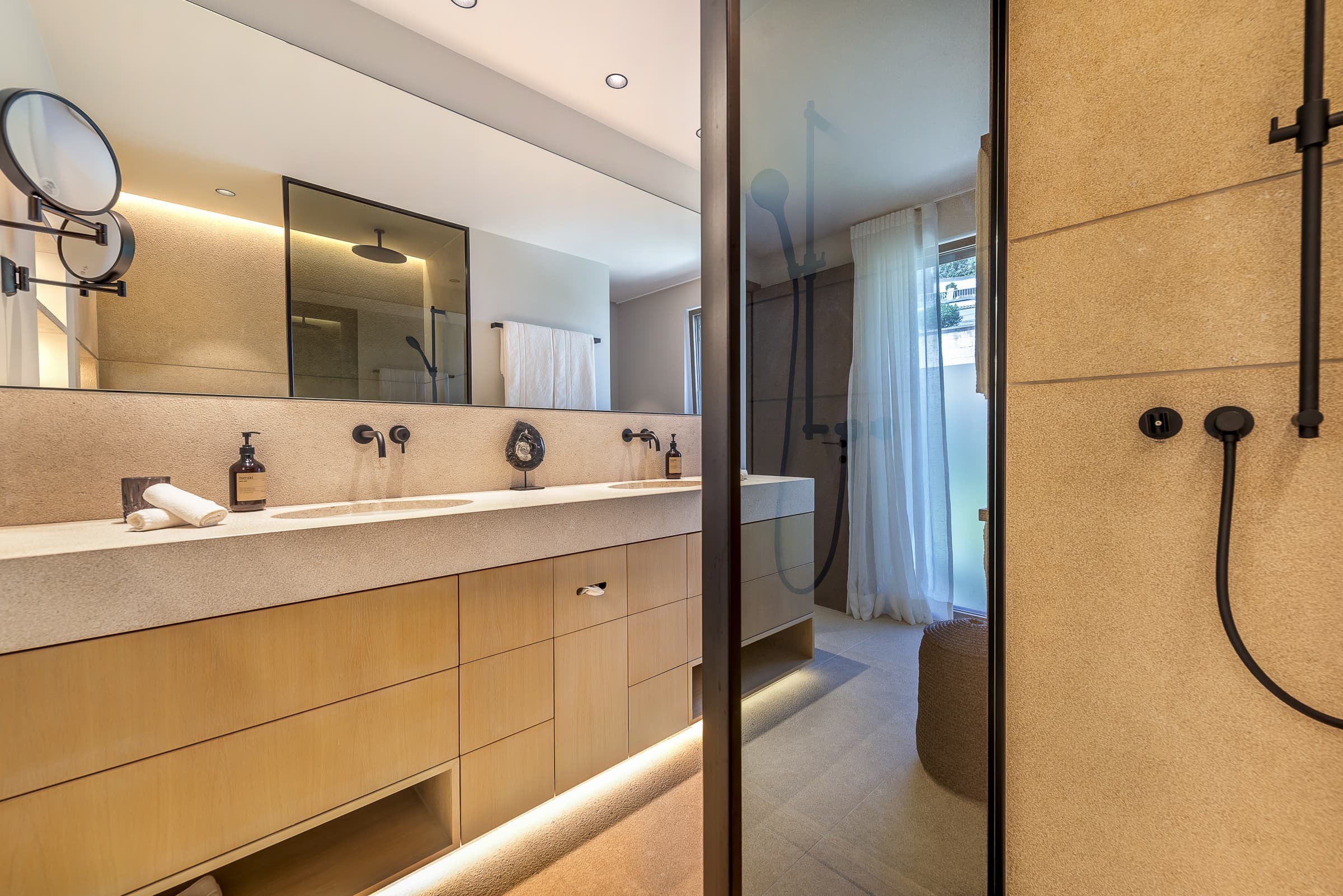 Four modern bathrooms, finished with a clean and refined aesthetic. Each space is designed for both comfort and practicality, complementing the overall sense of ease throughout the villa.