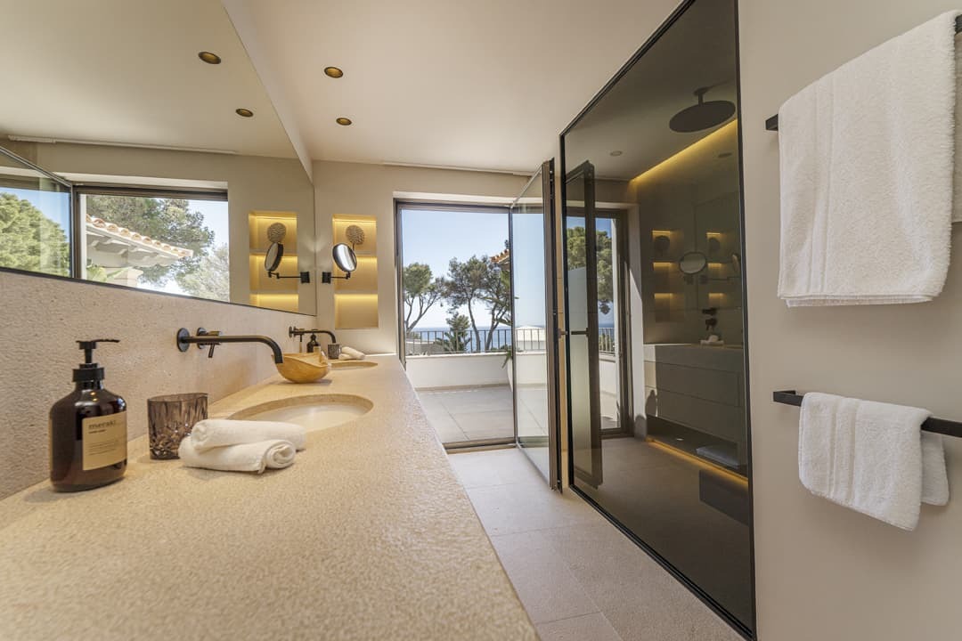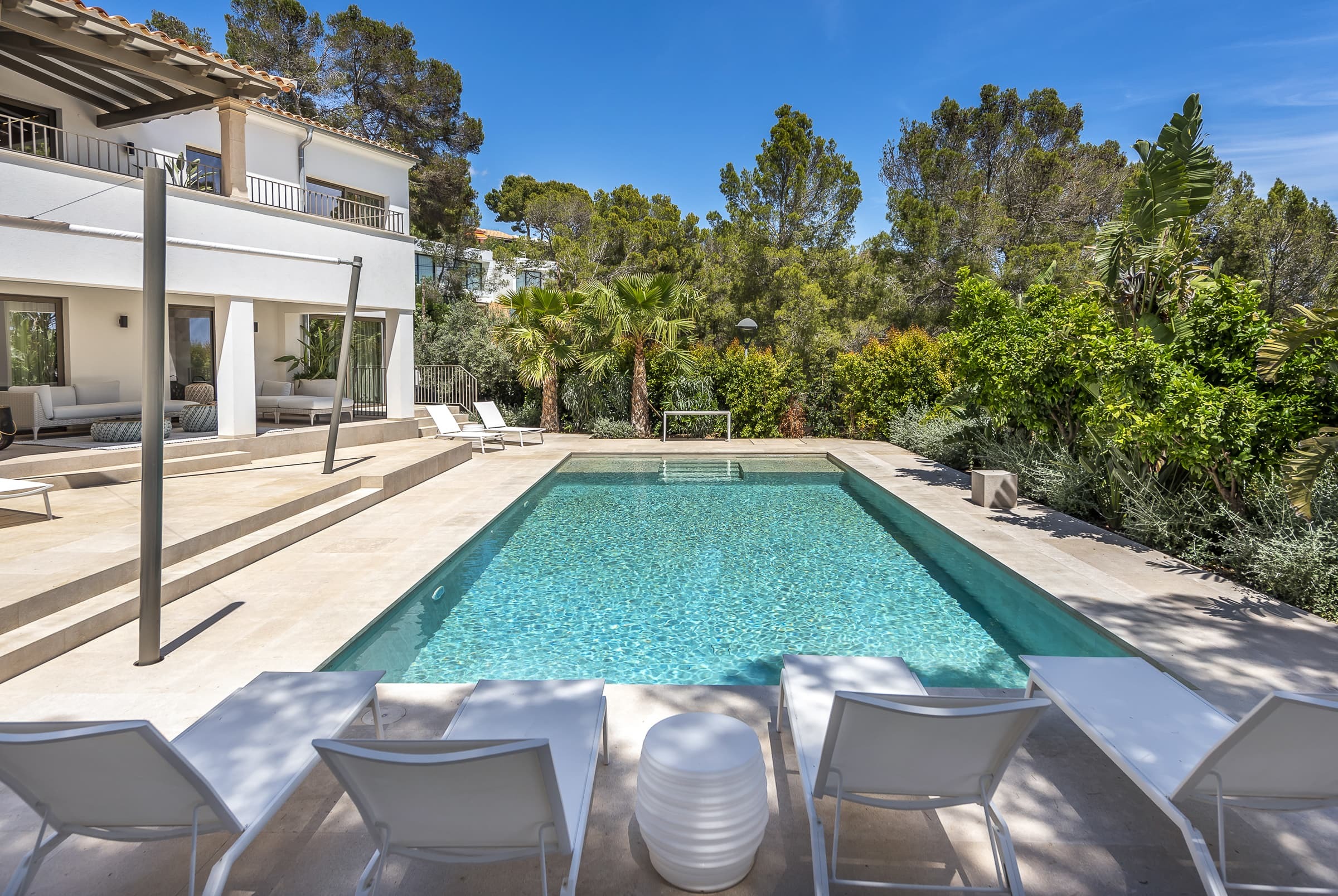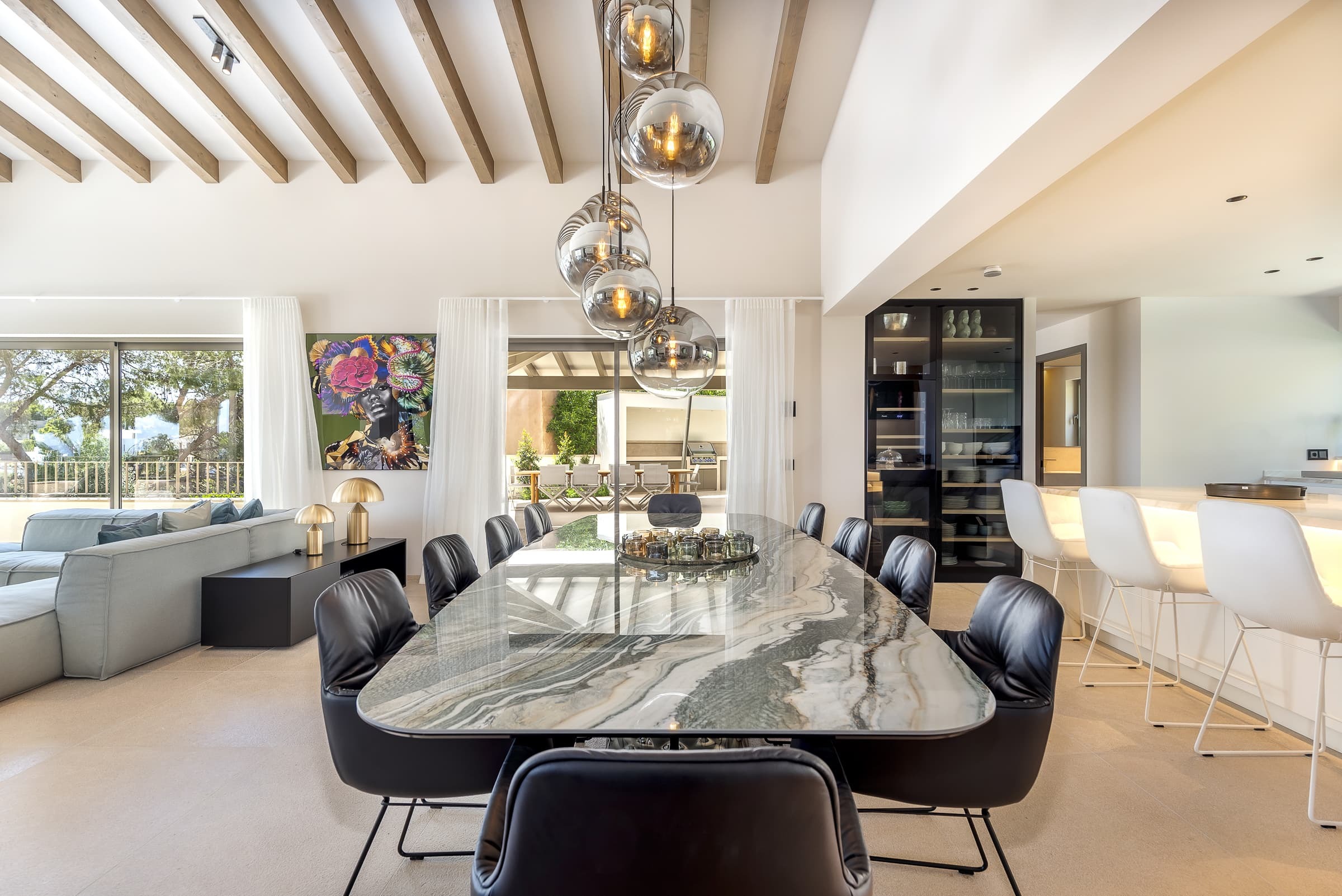 Situated in Costa d’en Blanes, the villa offers both privacy and proximity. Puerto Portals can be reached within minutes, offering a refined selection of restaurants, boutiques, and marina-side experiences. Beaches and golf courses are also close by, while Palma is approximately 15 to 20 minutes away. A car is recommended to explore the surrounding coastline and wider island with ease.