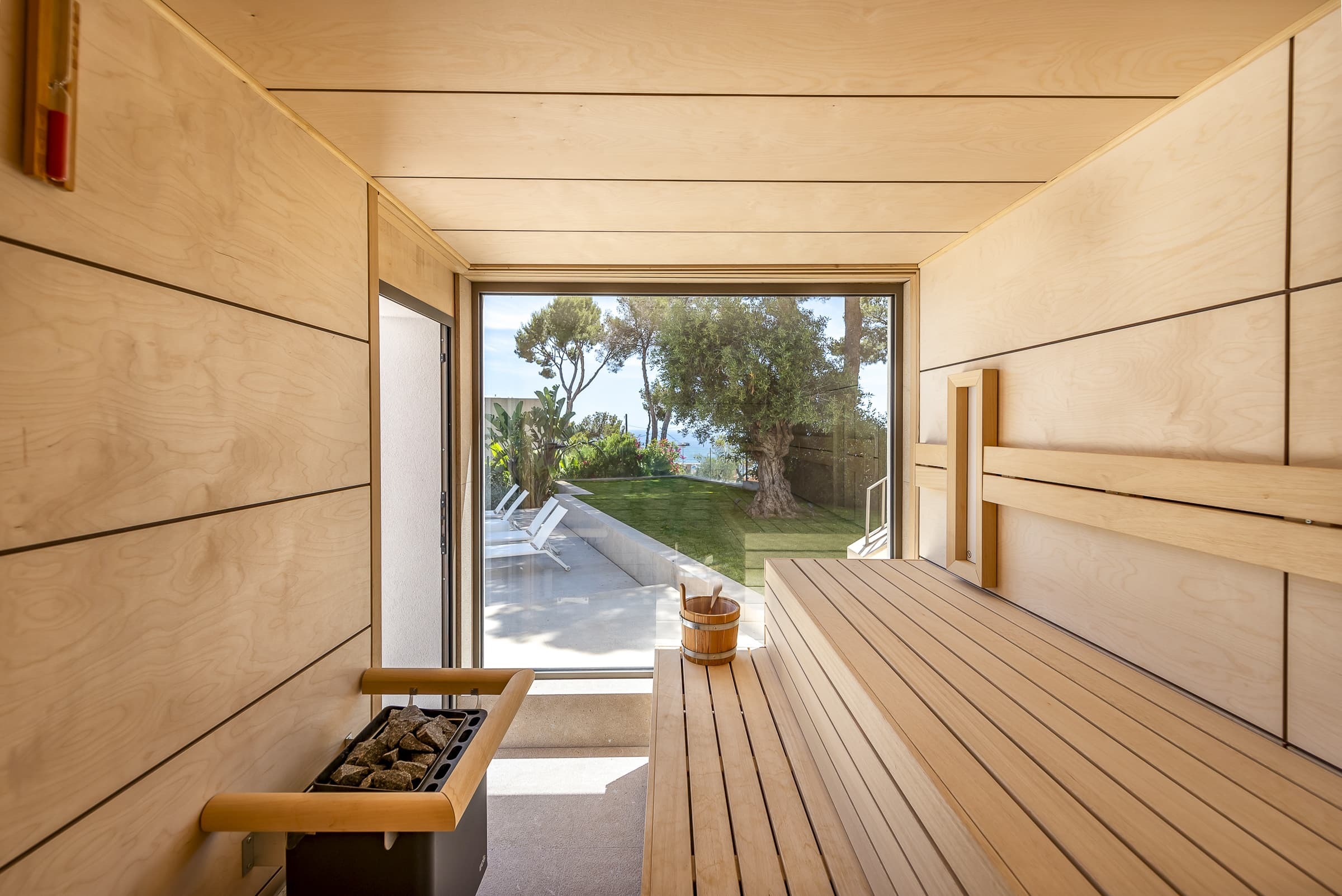 From its elevated setting, the sea remains a constant presence. Light moves gently across the terraces and interiors throughout the day, while evenings settle into a quieter rhythm as the coastline softens into dusk.