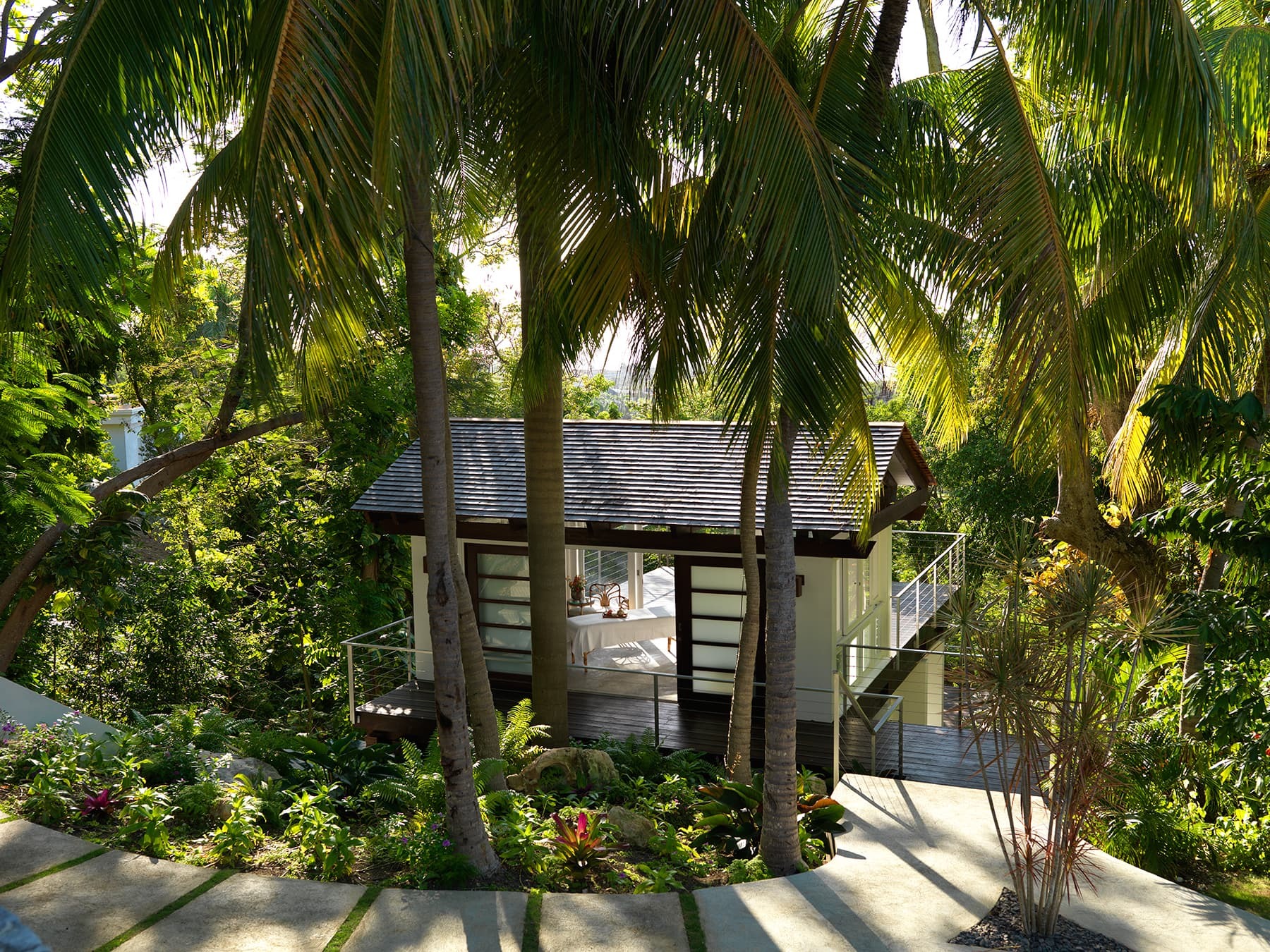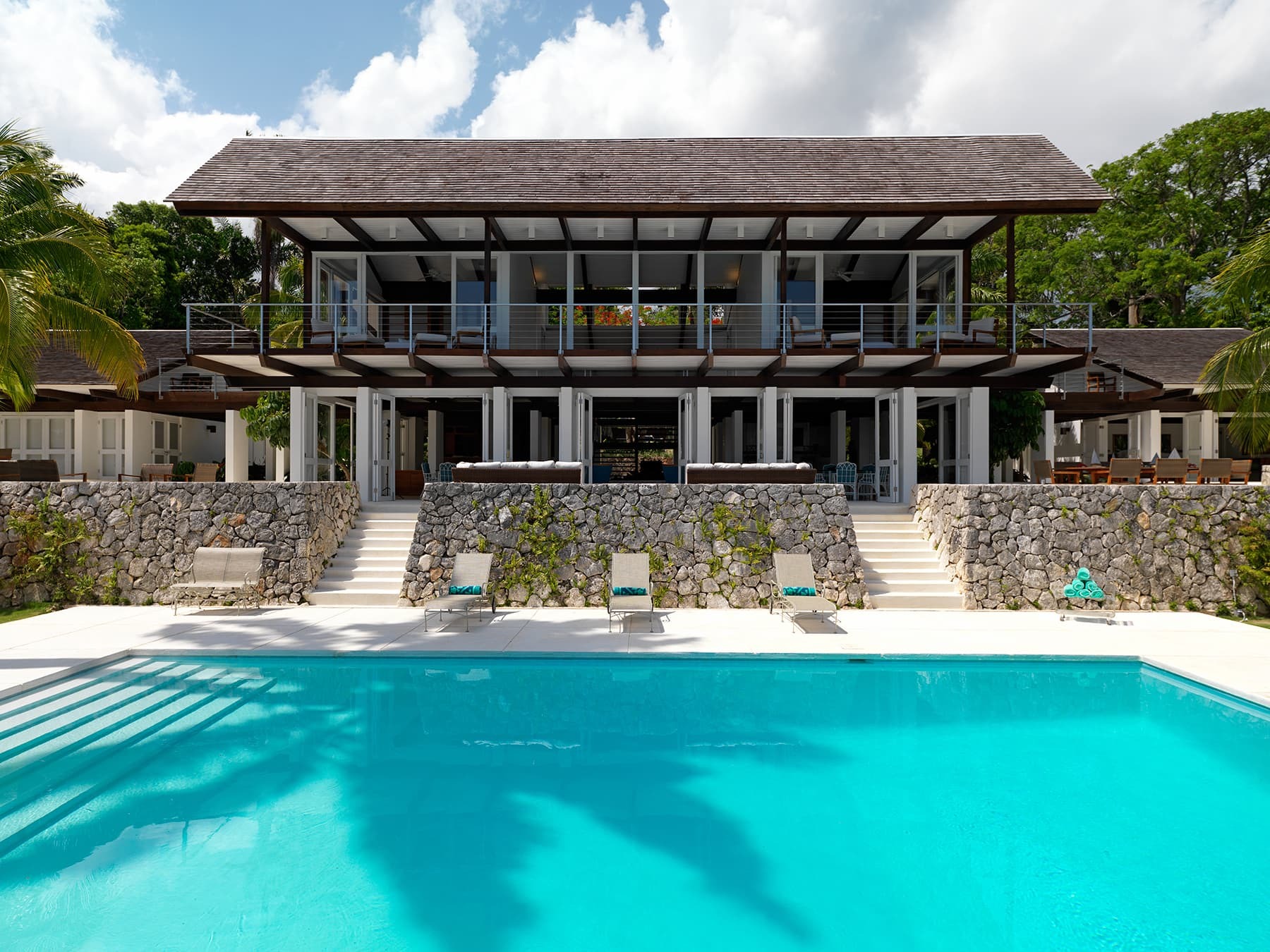 Today, Villa Rosa has been meticulously renovated by its current owners, preserving the integrity of its original architectural character while elevating every element for modern living. Distinctive features such as the sculptural floating staircase remain at the heart of the home, complemented by refined new additions including spa inspired bathrooms, outdoor bathtubs and showers, a sleek contemporary kitchen and bar, and beautifully integrated technology throughout.