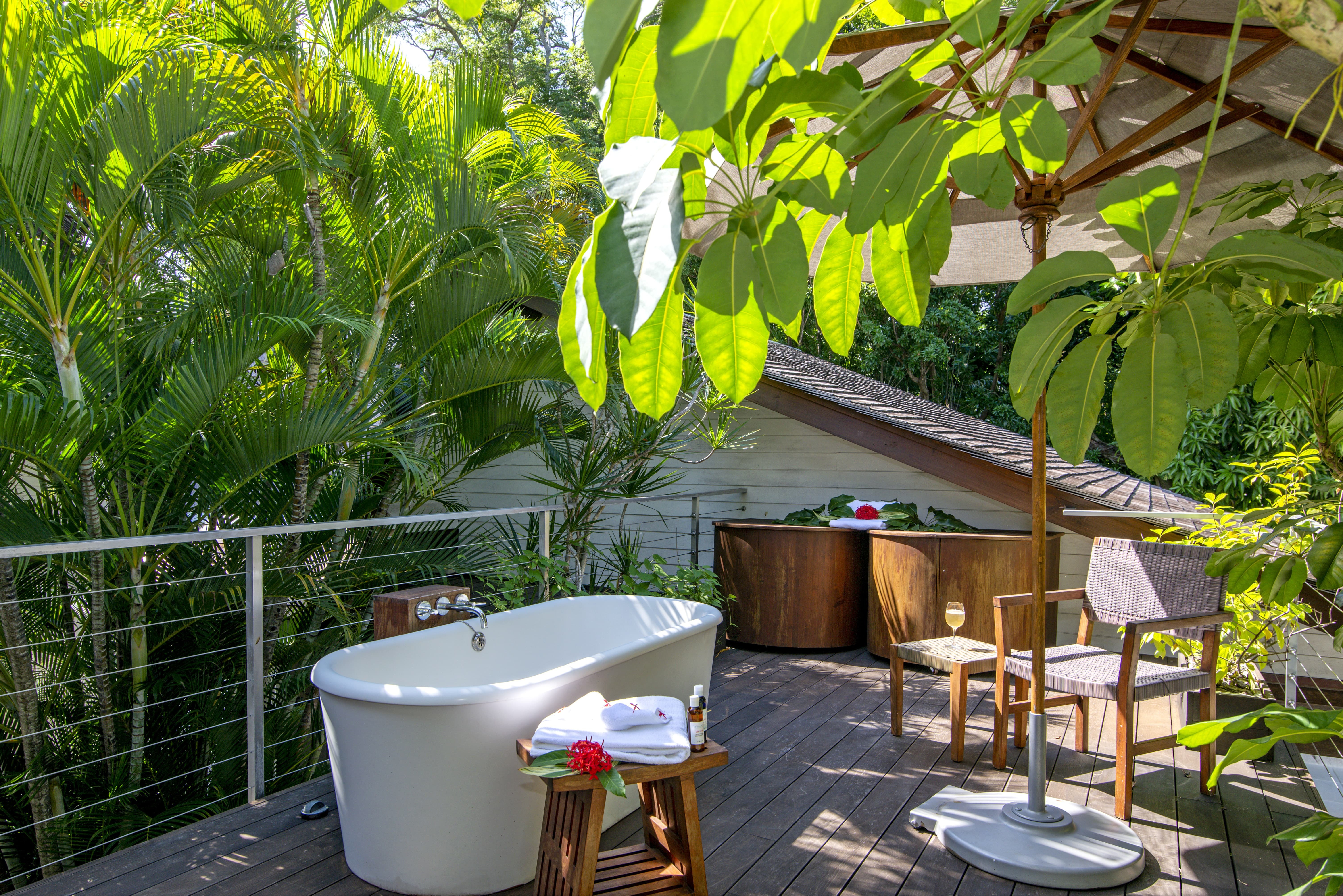 Outdoor living is central to the Villa Rosa experience. Terraces and open air areas are designed for relaxation, wellness activities, and dining. Outdoor tubs and showers enhance the connection to nature, while ocean views frame every moment spent outside.