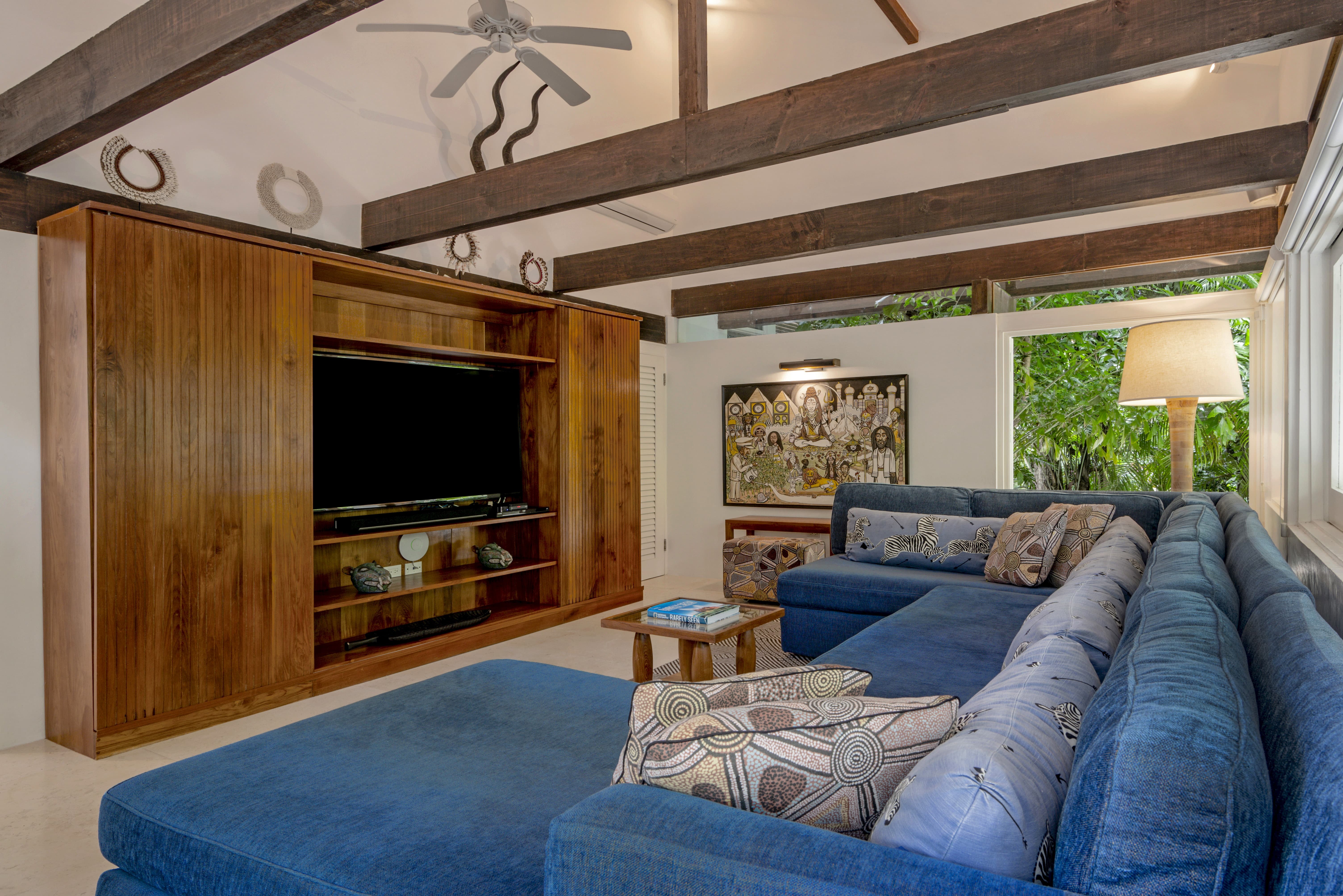 Air conditioning is available throughout the villa to ensure comfort year round, complemented by natural ventilation from hillside breezes and thoughtfully positioned openings.