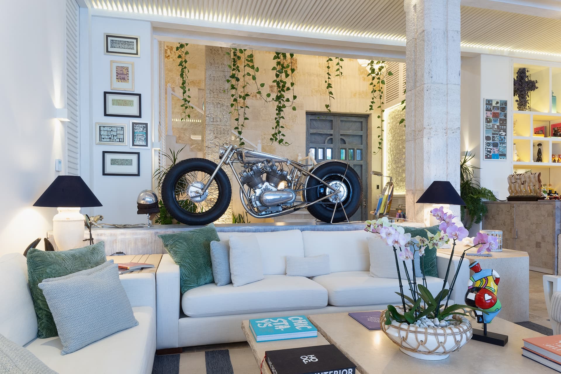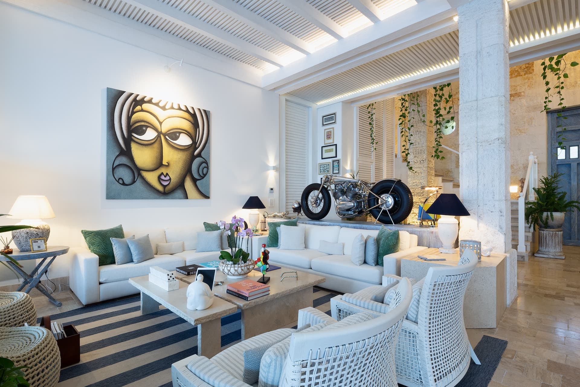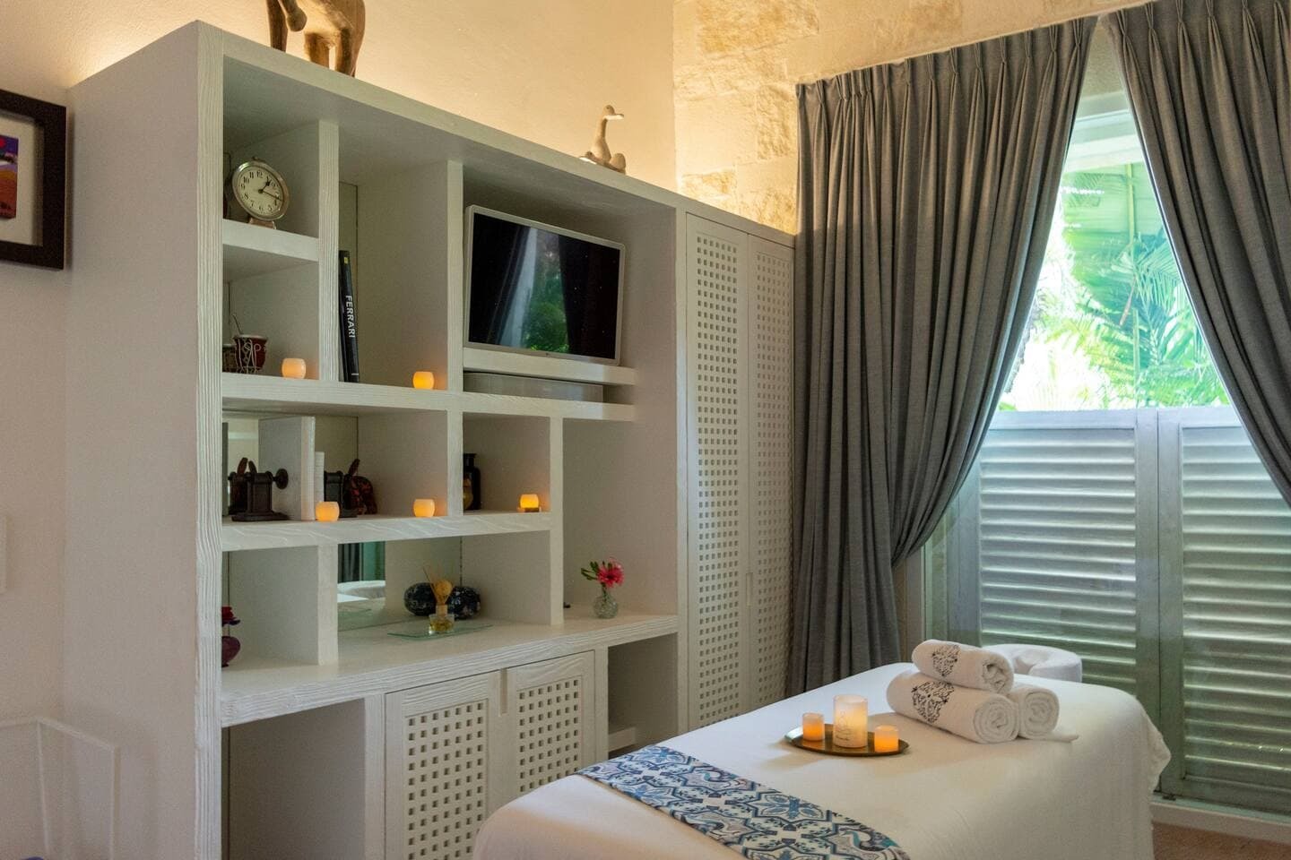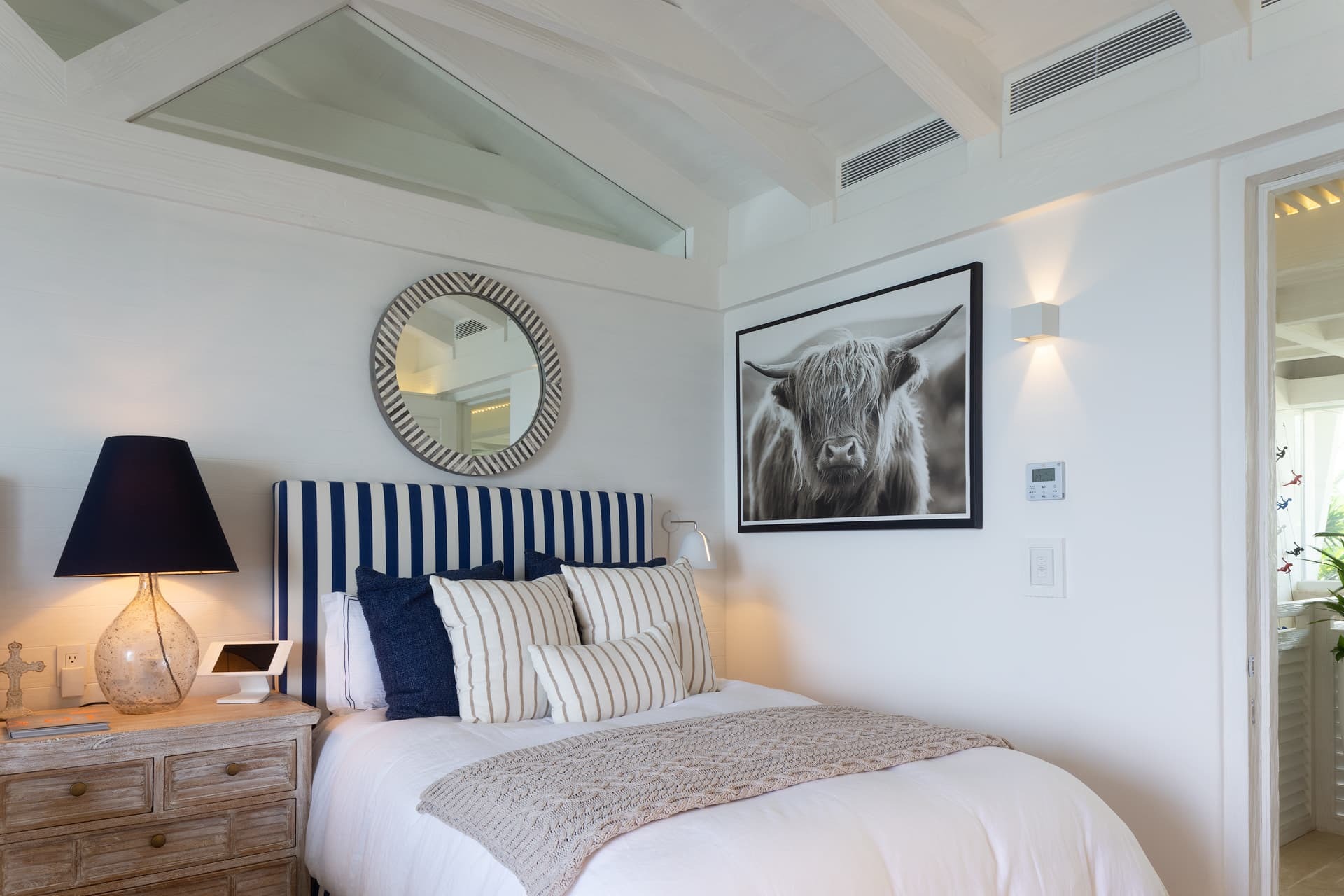 Villa Sha is designed around expansive, ocean facing living areas that flow effortlessly between indoors and out. Generous lounges, a formal dining space, and a stylish indoor bar are arranged to maximise views across the Caribbean Sea, creating an inviting setting for socialising while still offering quiet corners for relaxation.