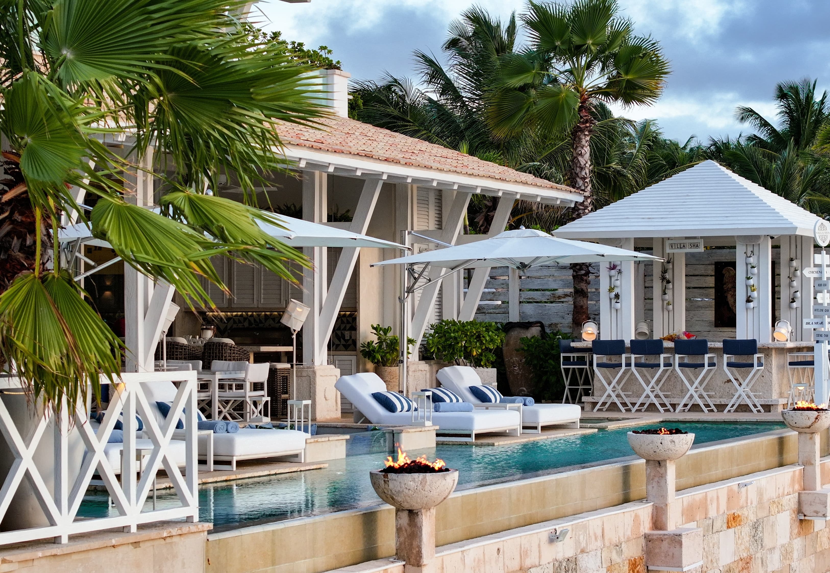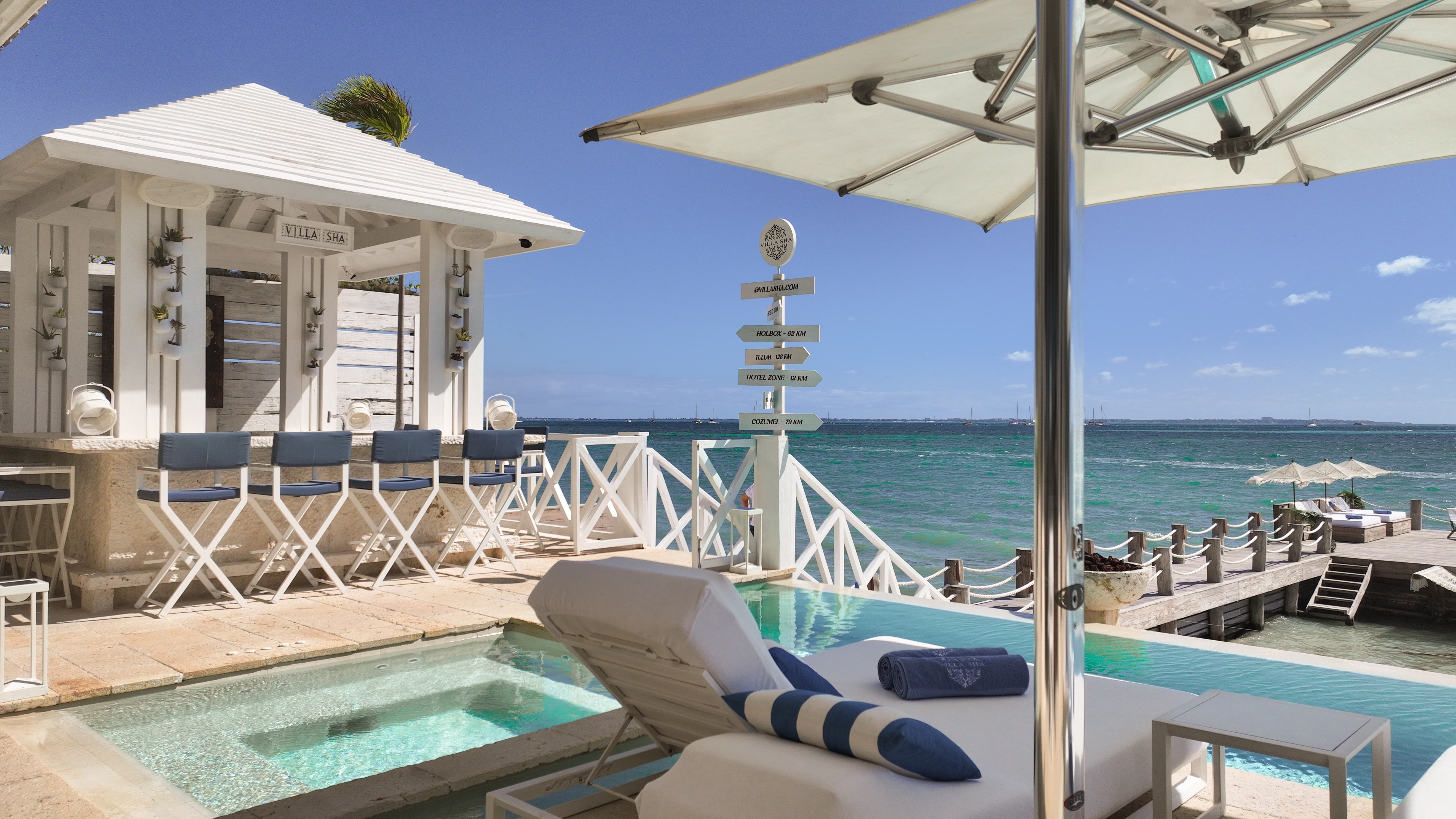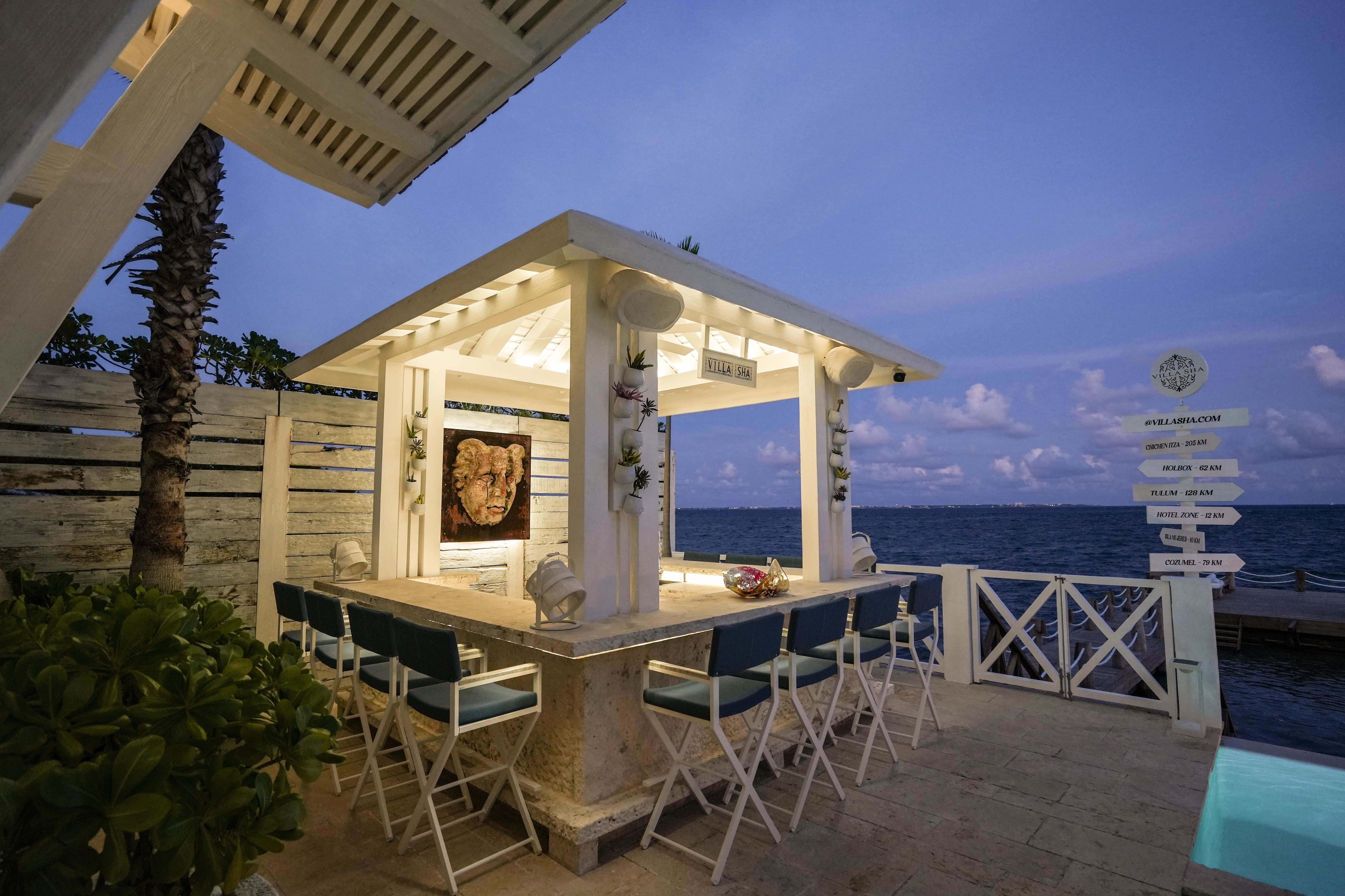 Villa Sha is located on Cancún’s peaceful northern coastline at Punta Sam, with uninterrupted ocean views and Isla Mujeres visible just offshore. The setting offers privacy and calm while remaining within easy reach of Cancún’s amenities and marina access.