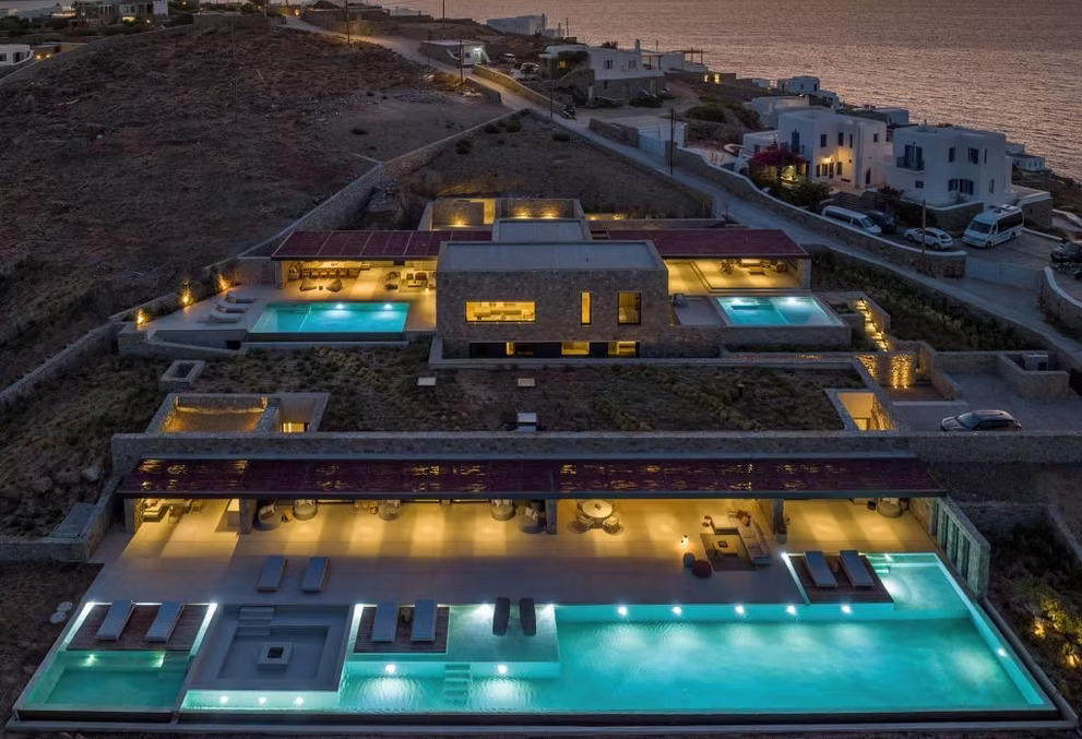 Villa Syka rises above the coastline of Mykonos in the prestigious enclave of Aleomandra, just moments from Glyfadi Beach. Designed for those who value discretion, scale, and architectural clarity, this exceptional ten-bedroom estate offers a refined expression of contemporary island living.