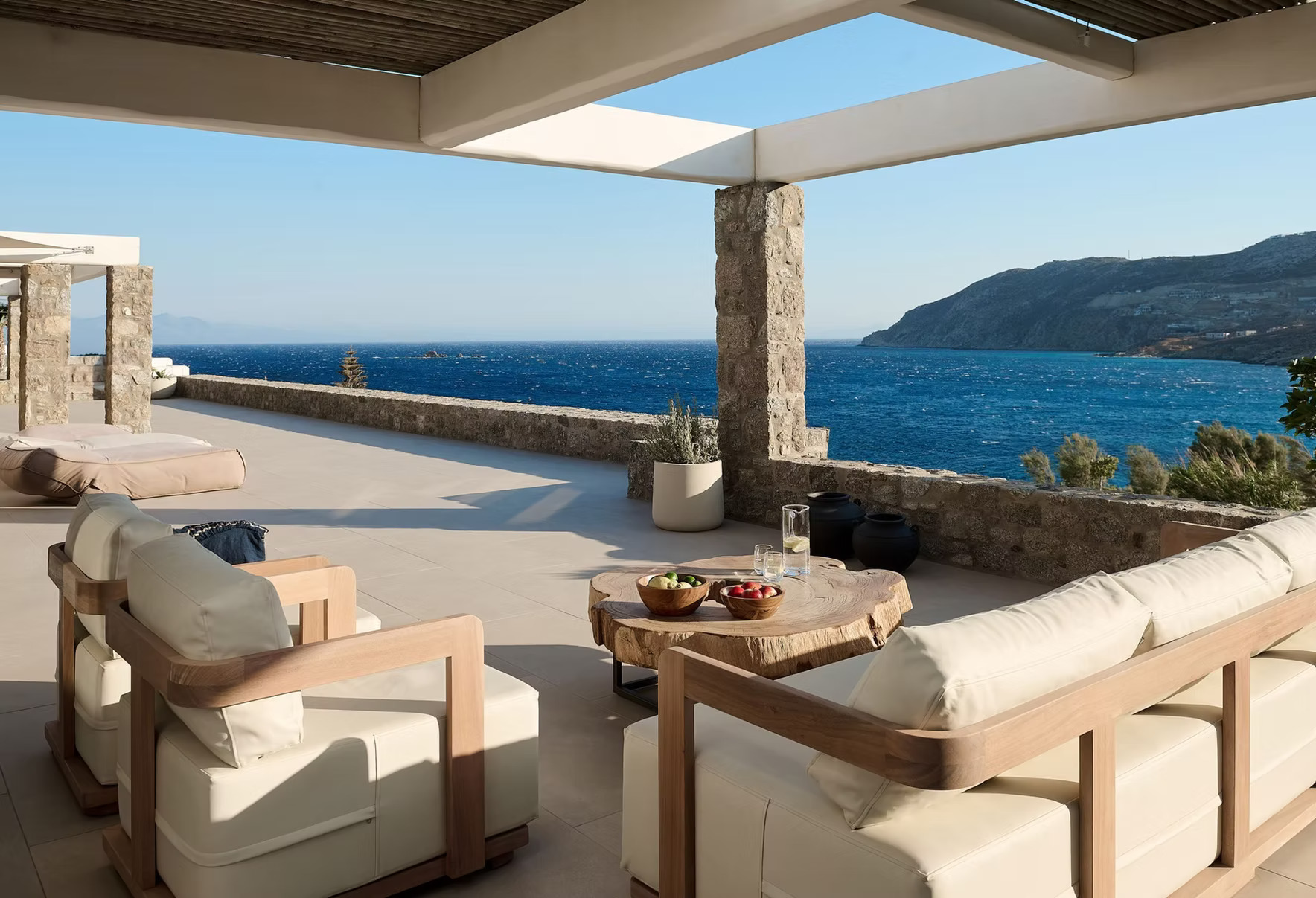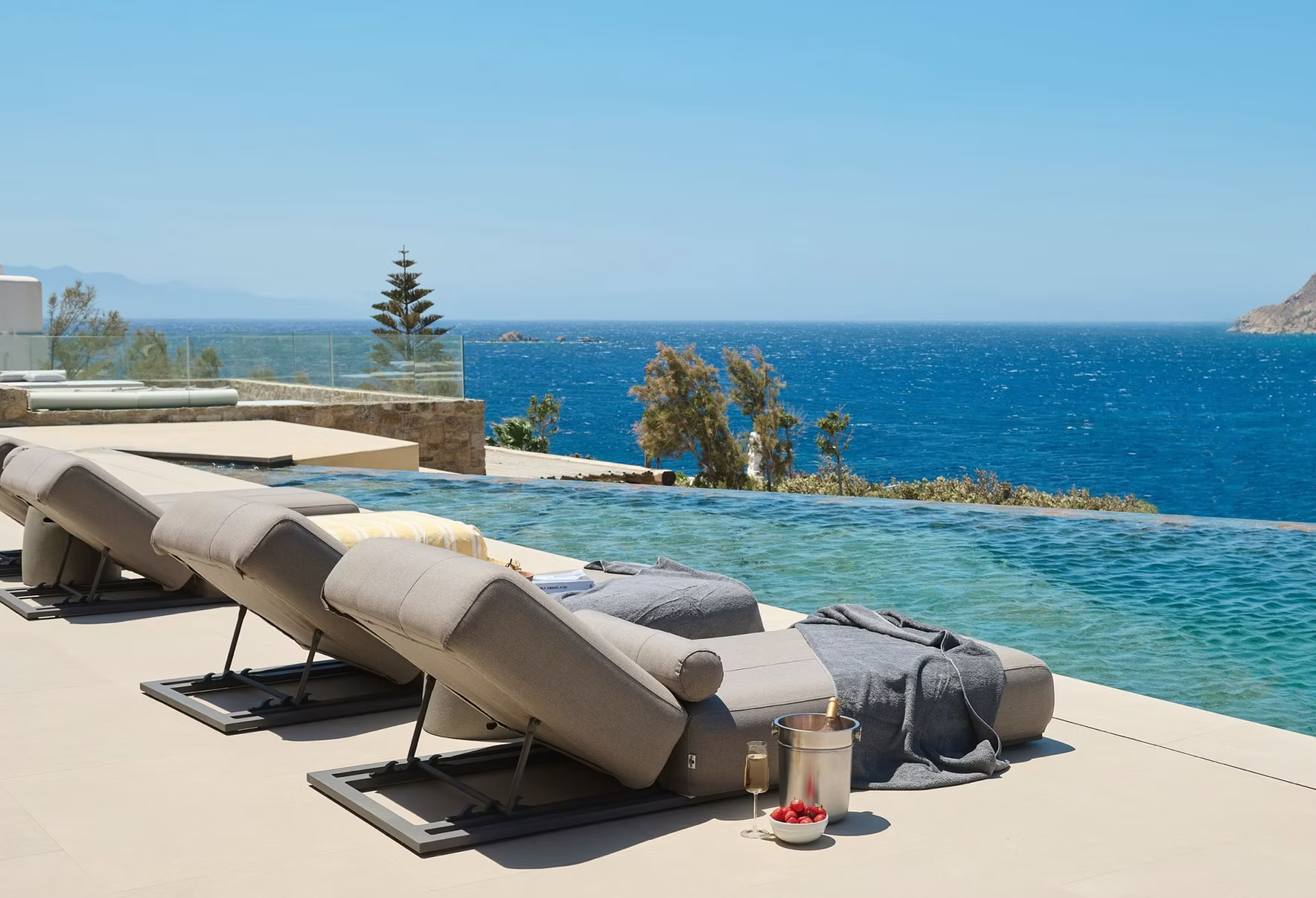 From relaxed beach days at Kalo Livadi and water sports along the Aegean coast to private yacht charters and sunset dining experiences, the surrounding area offers a vibrant yet refined island lifestyle. Evenings can be spent exploring Mykonos’ renowned restaurants and nightlife, with every detail curated seamlessly by the concierge team.