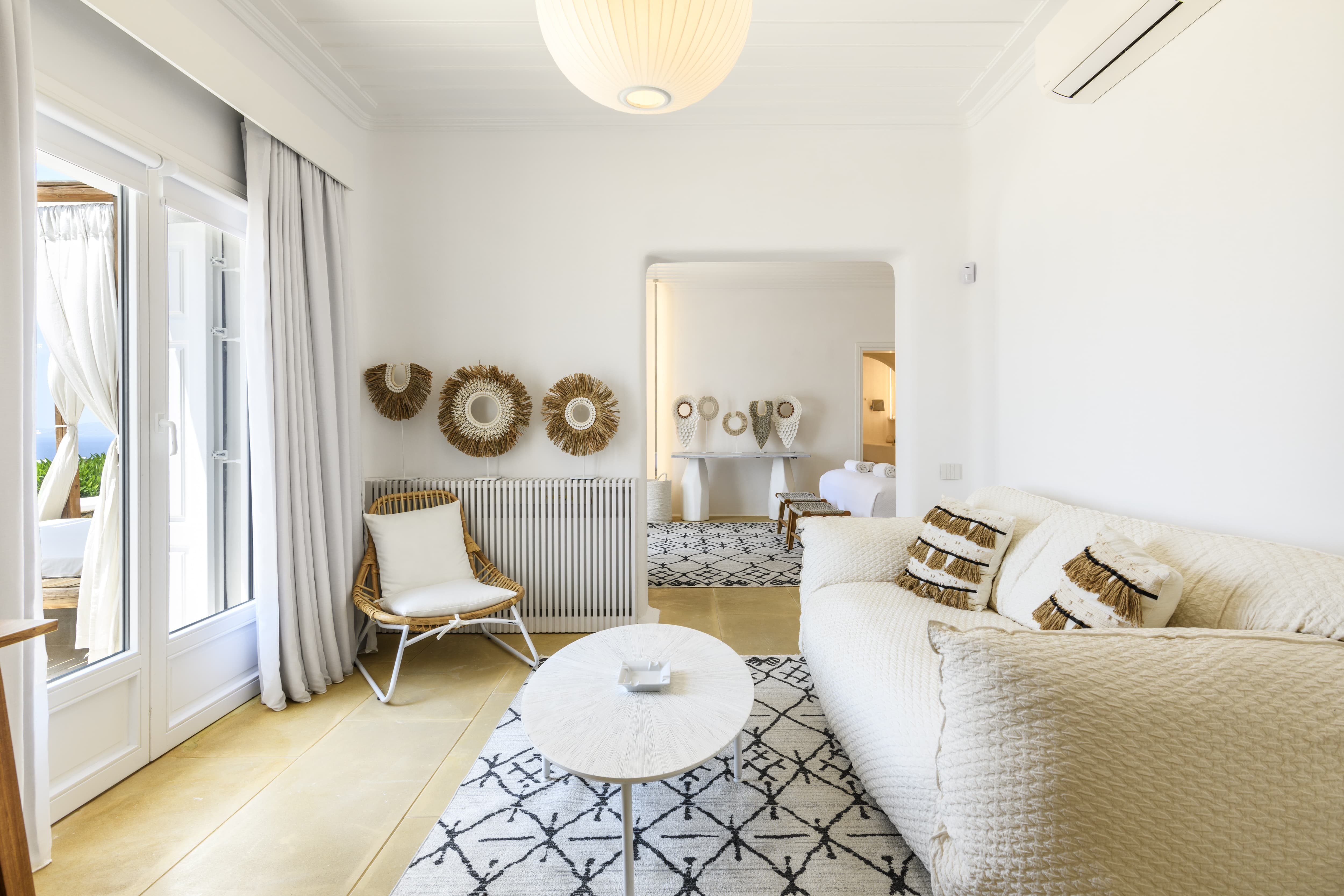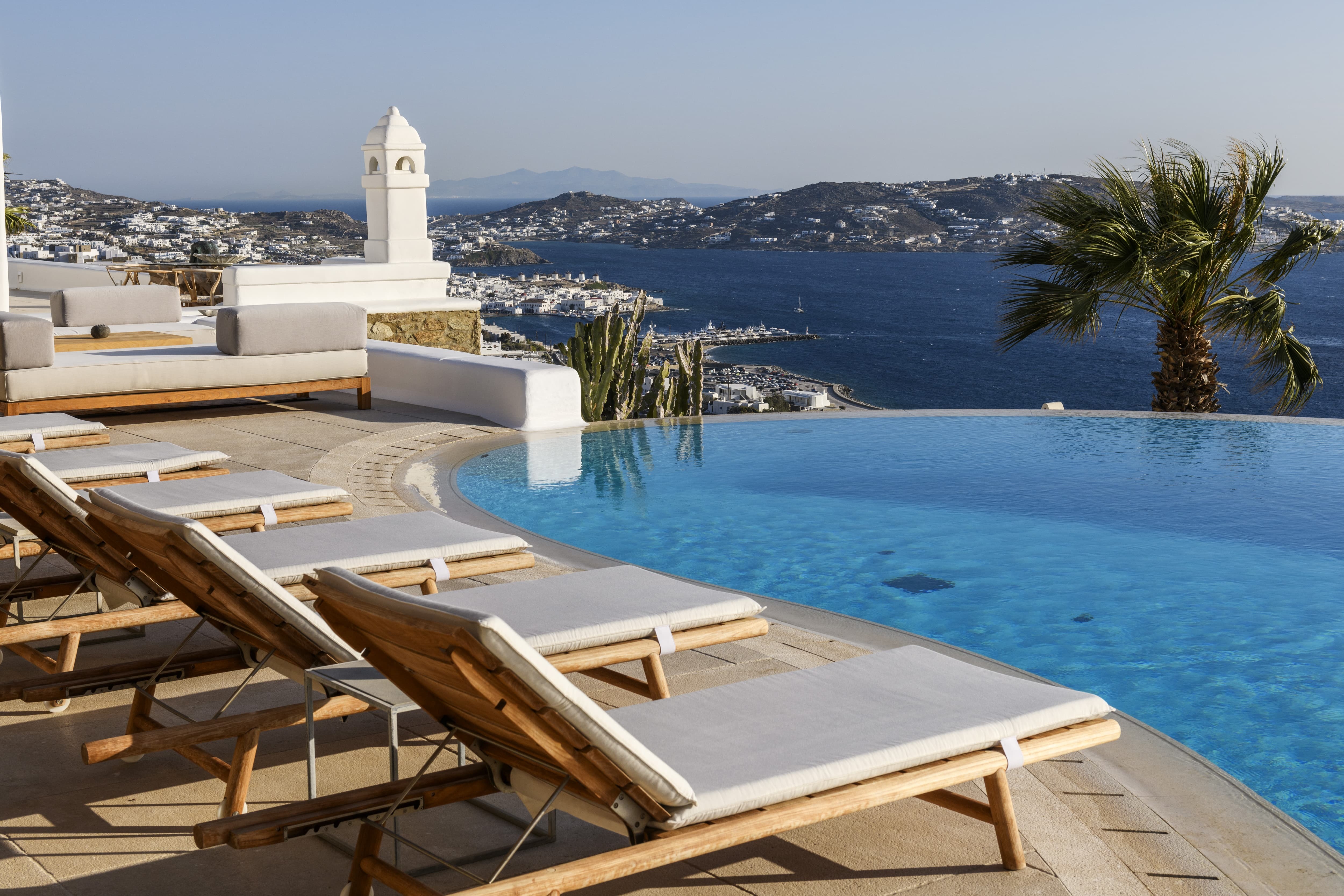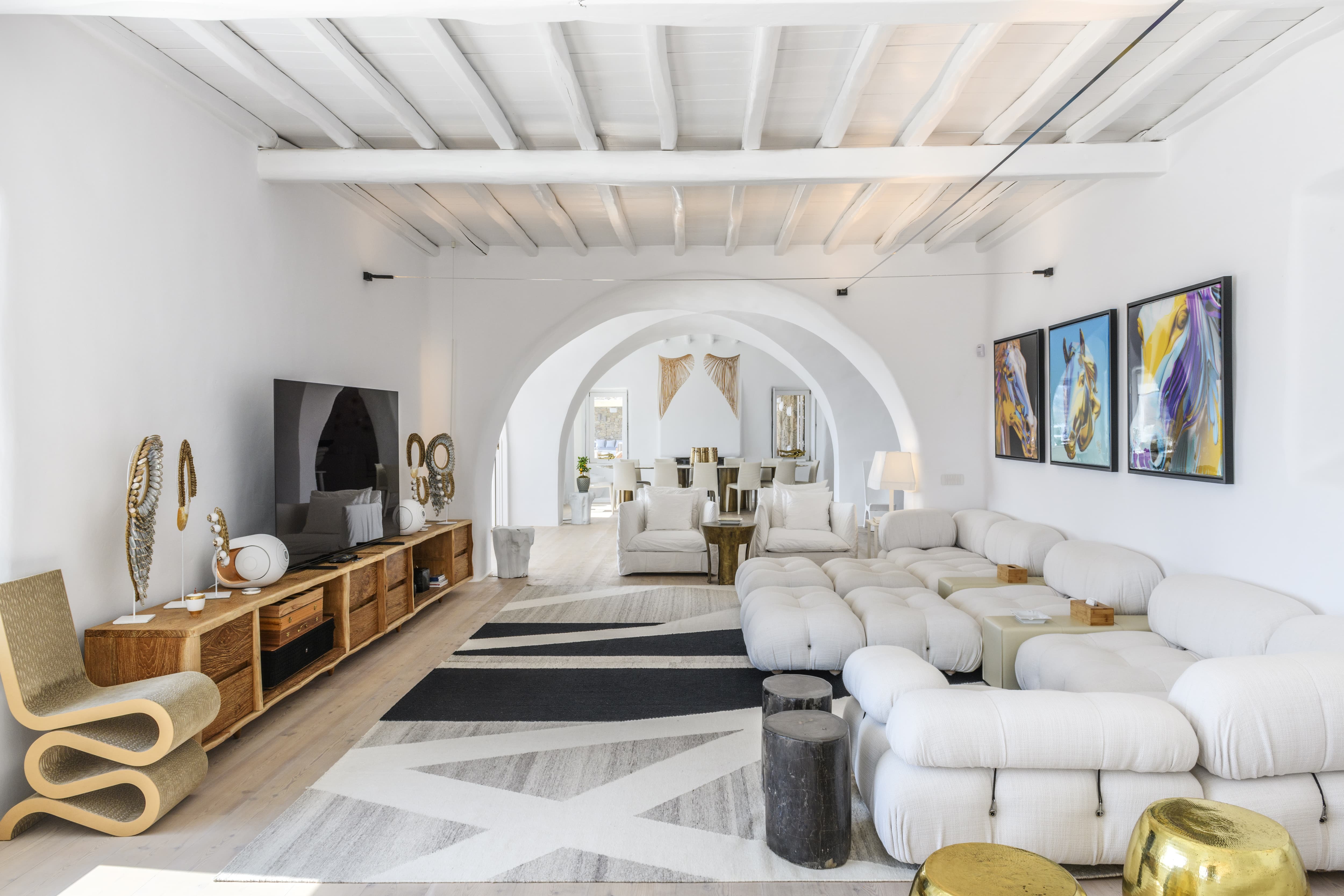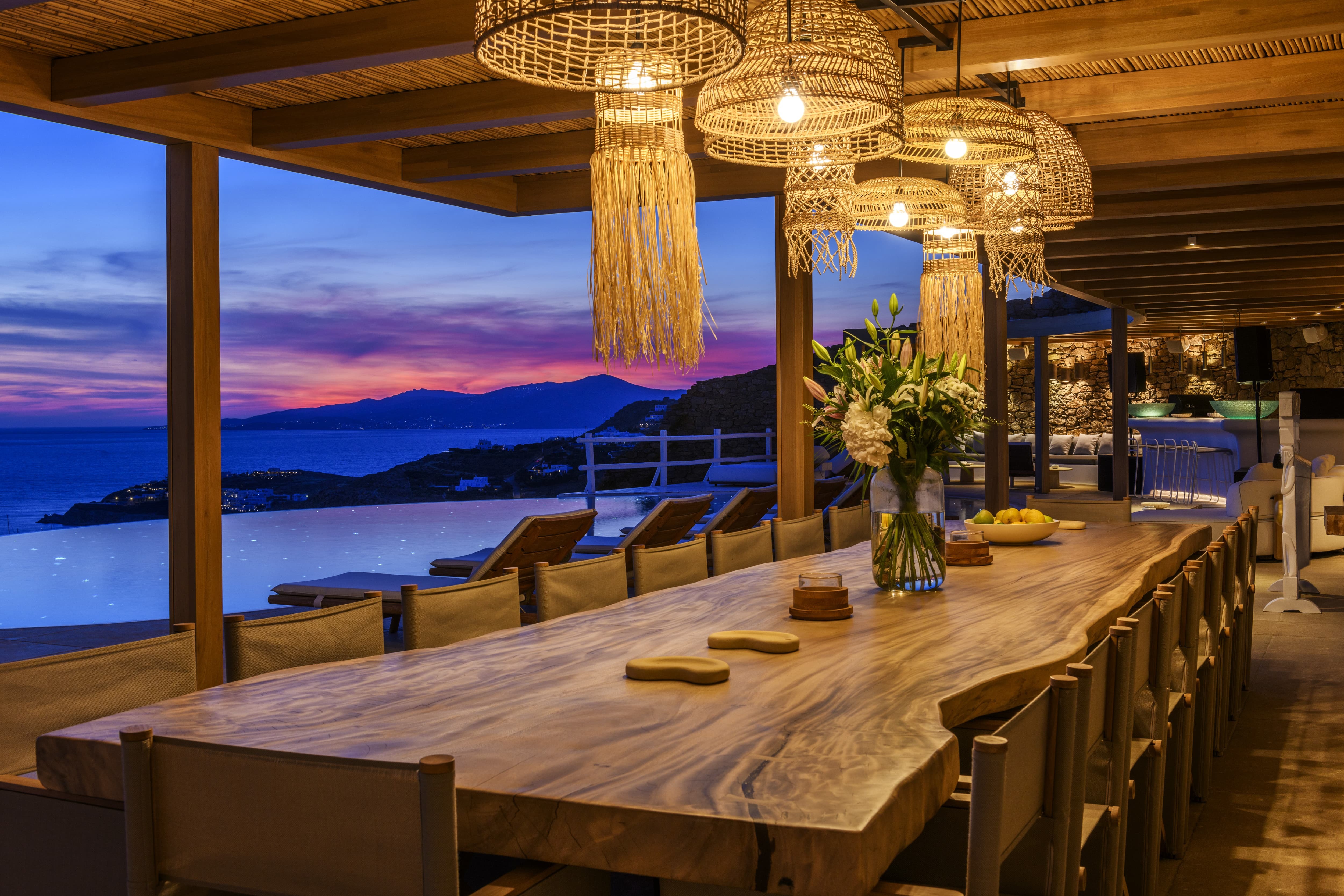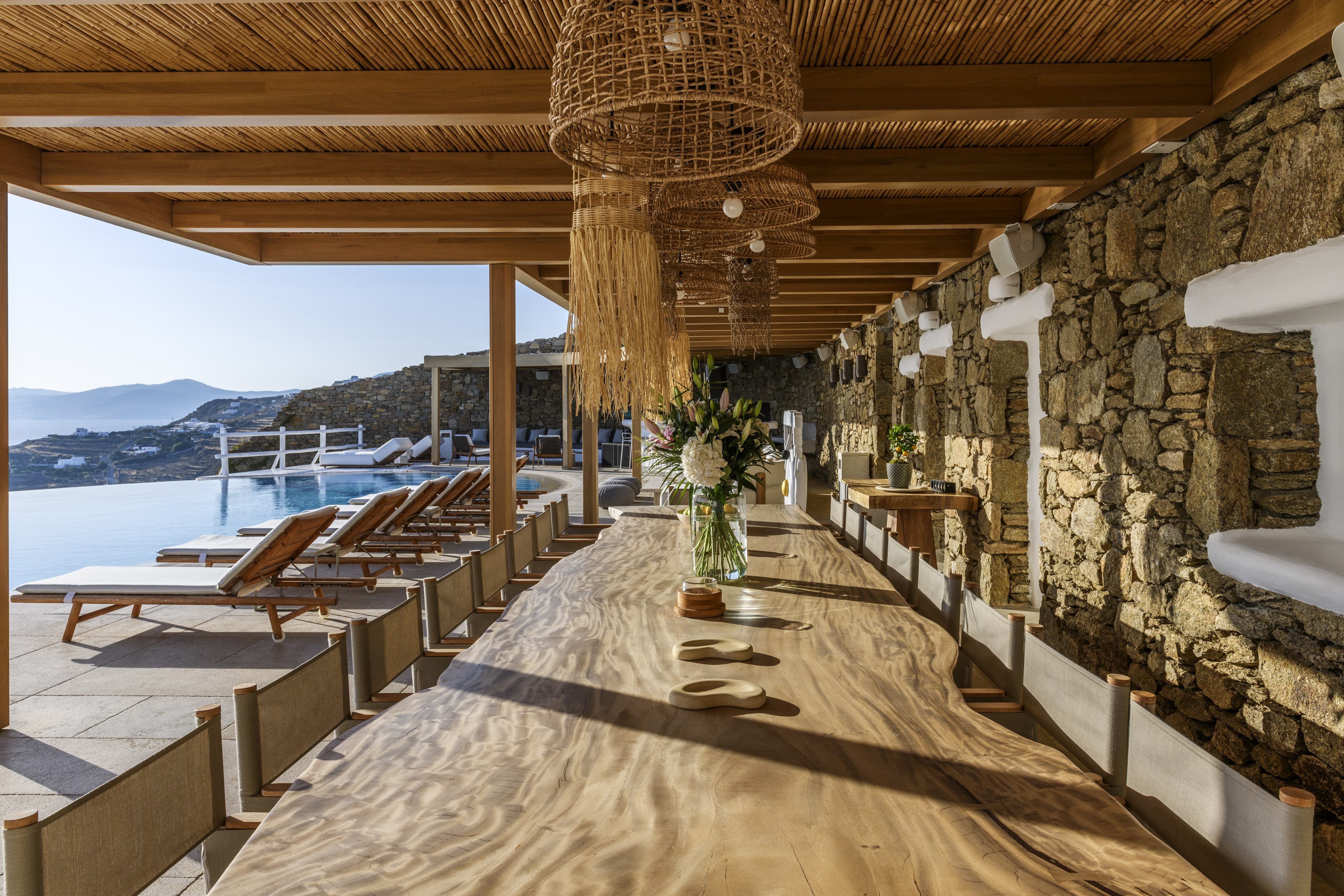 From its elevated setting, the villa offers easy access to Mykonos’ full lifestyle offering.