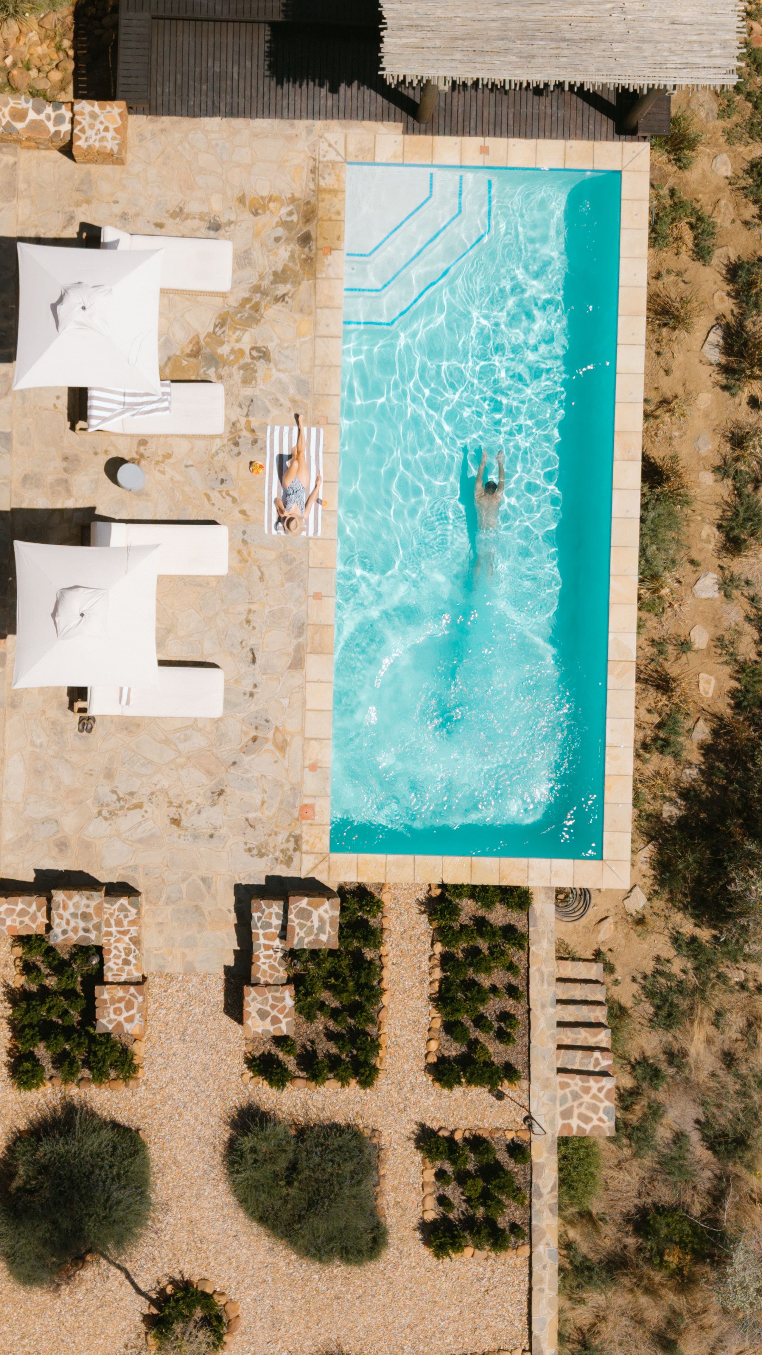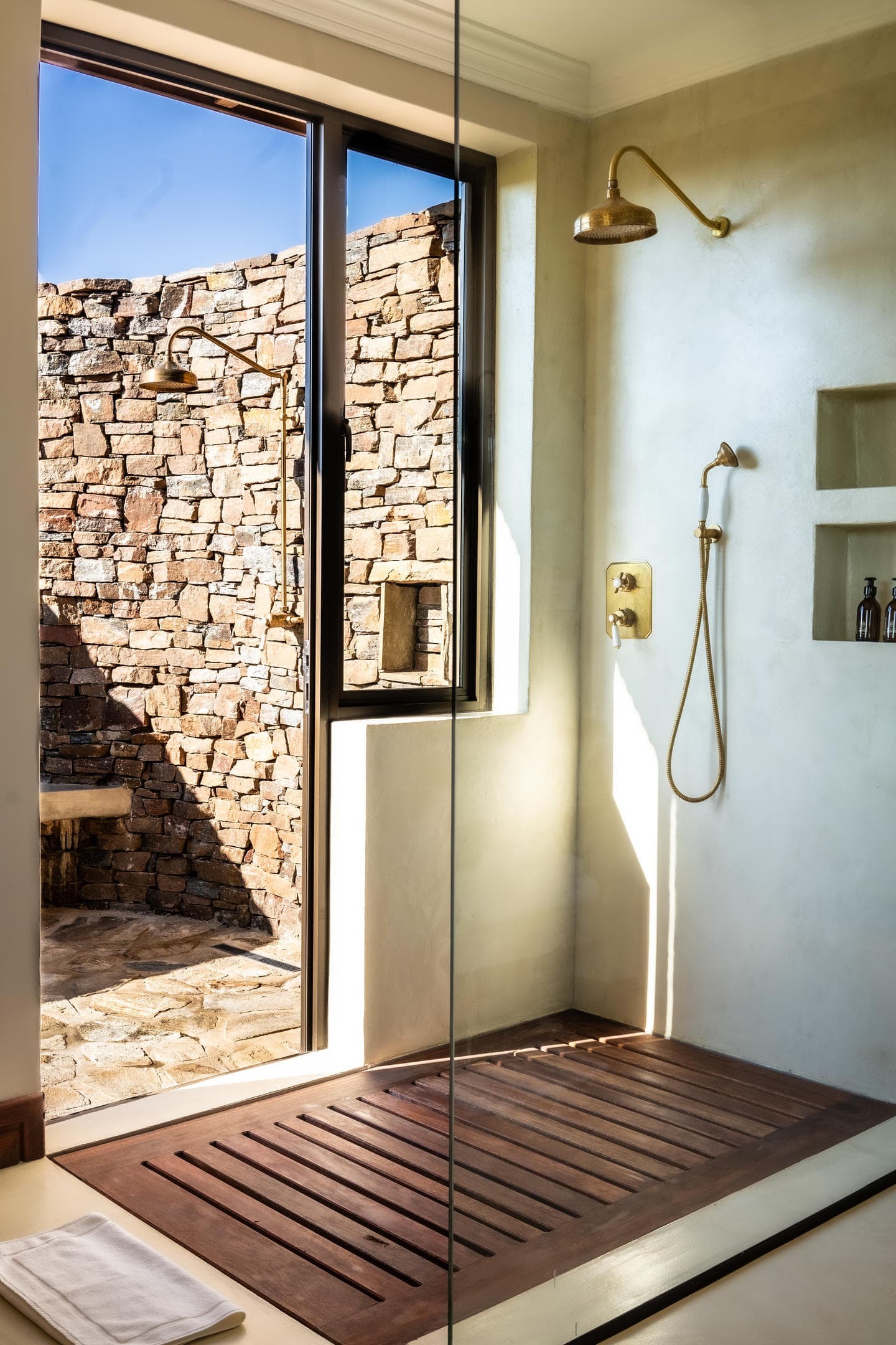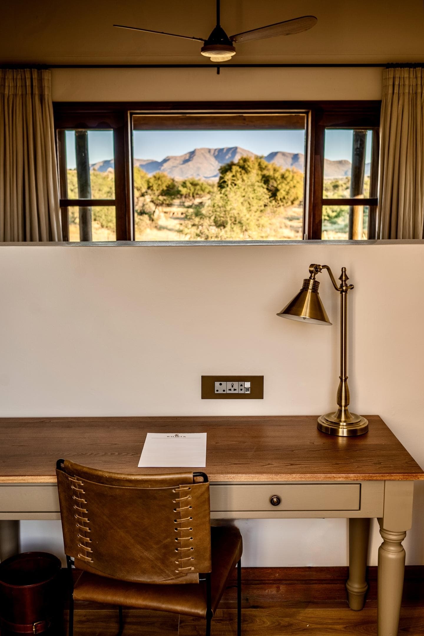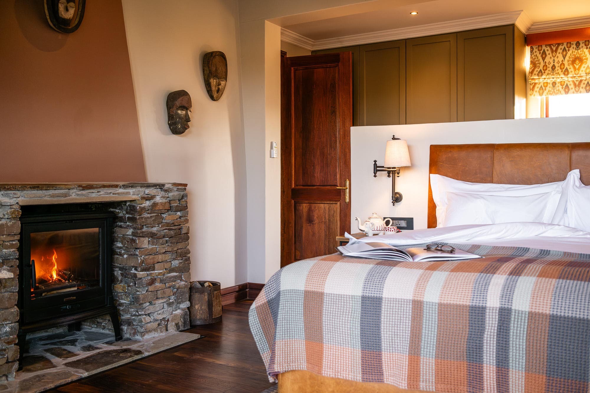 Villas are designed to remain comfortable throughout the year with natural ventilation, shaded terraces, and air conditioning where required. Fireplaces in the villas provide warmth during cooler evenings in the Namibian highlands.