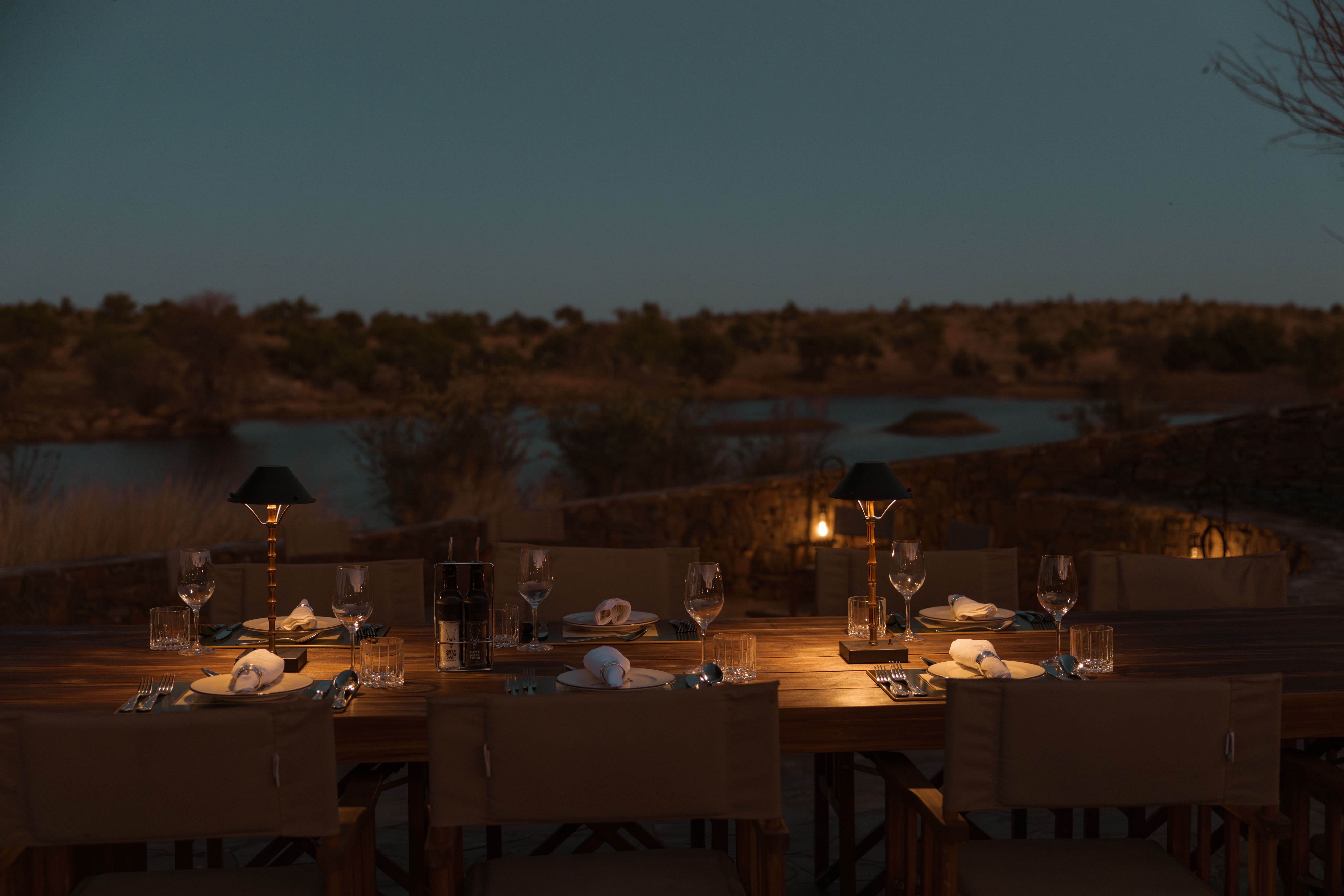 Dining at Waldeck Lodge centres around a farm-to-table philosophy. Gourmet meals are prepared by the lodge’s private chef using seasonal ingredients sourced from the property’s gardens and surrounding region. Guests can enjoy breakfasts at sunrise, relaxed lunches overlooking the reserve, or atmospheric dinners served under the stars in the boma area. The lodge also features an outdoor pizza oven and multiple dining locations including terrace dining and bush meal experiences.