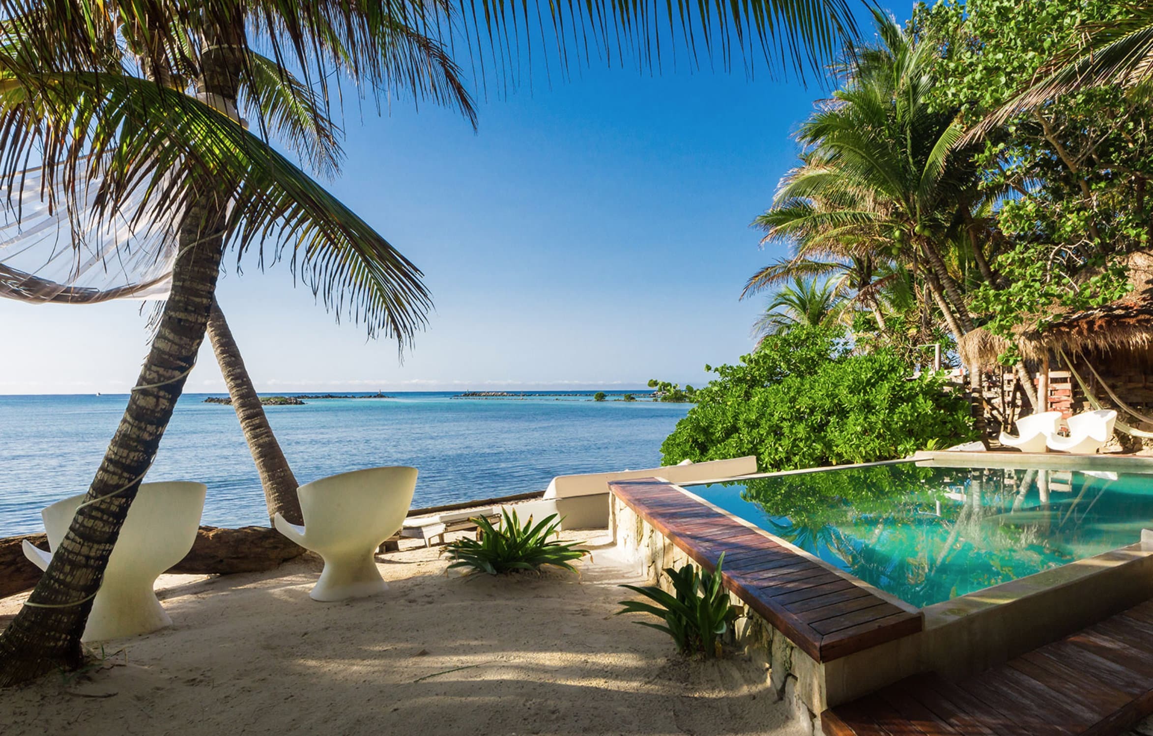 Zacil Na is set directly on the beachfront in Puerto Aventuras, offering immediate access to white sand and calm Caribbean waters, while remaining close to the marina, restaurants, and everyday amenities.